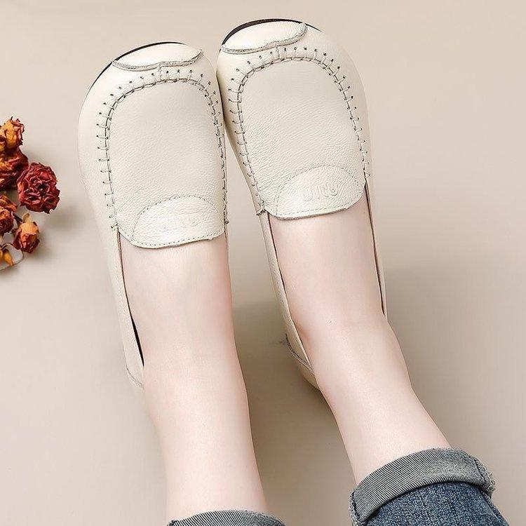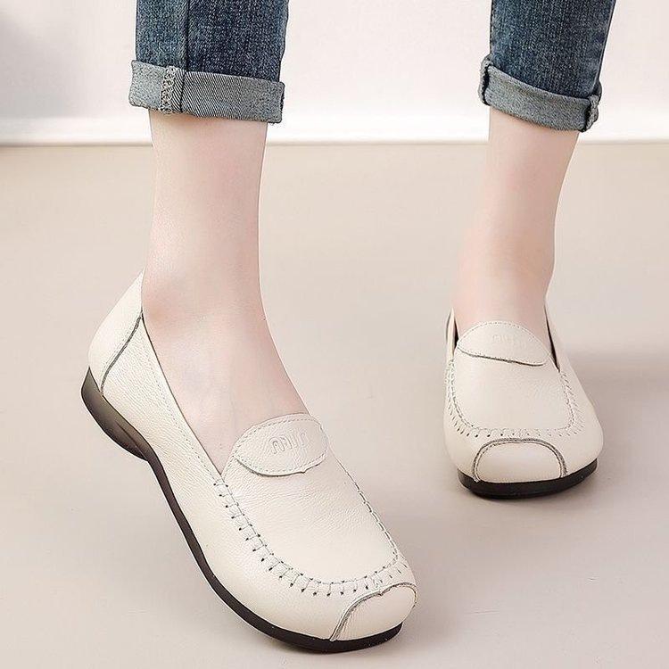 Zapatos Individuales de Otoño Nuevos Suela Suave Mediana Edad y Ancianos Antideslizantes Cómodos Fondo Plano Suela Suave Zapatos de Mamá Mocasines de Cuero Suave de Corte Bajo Zapatos de Mujer