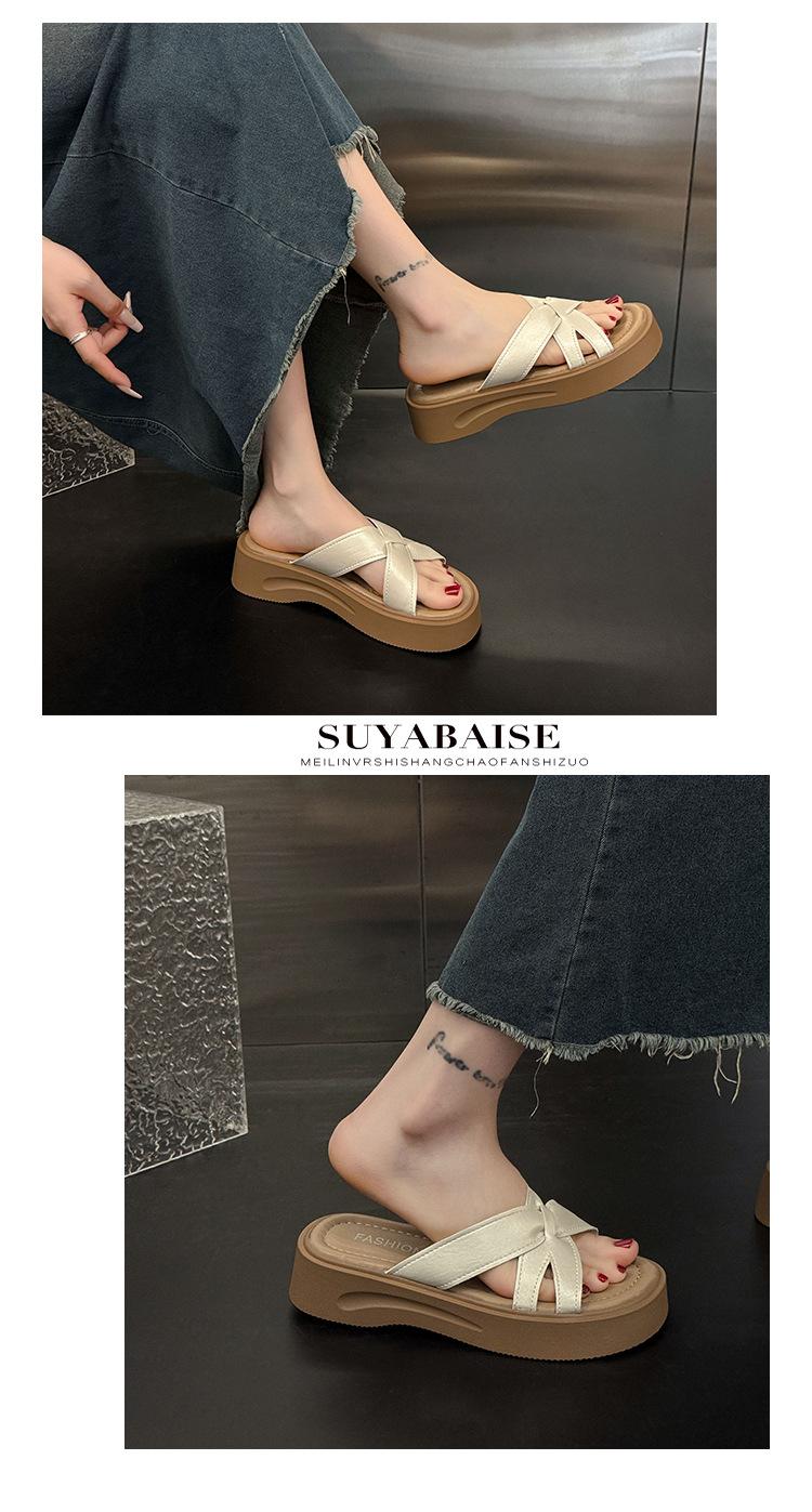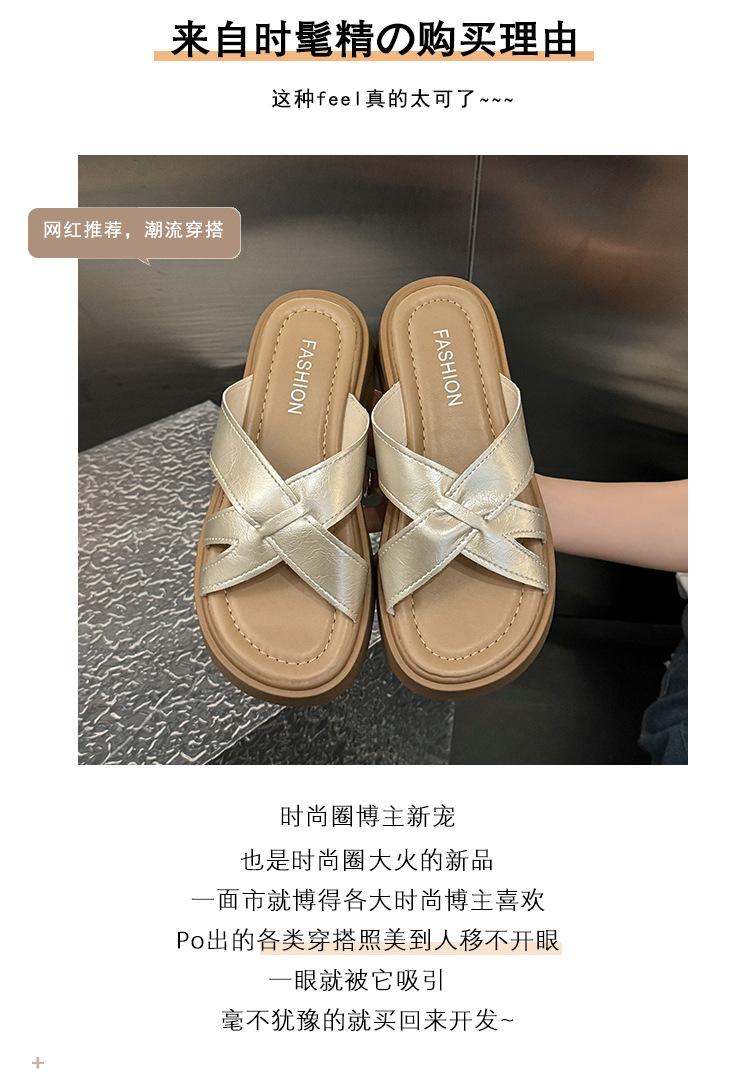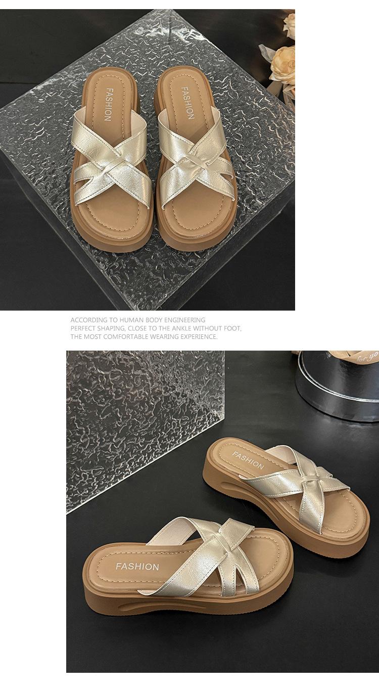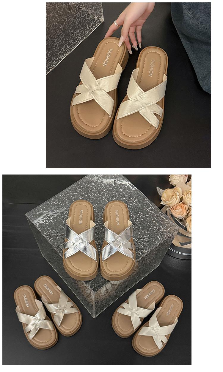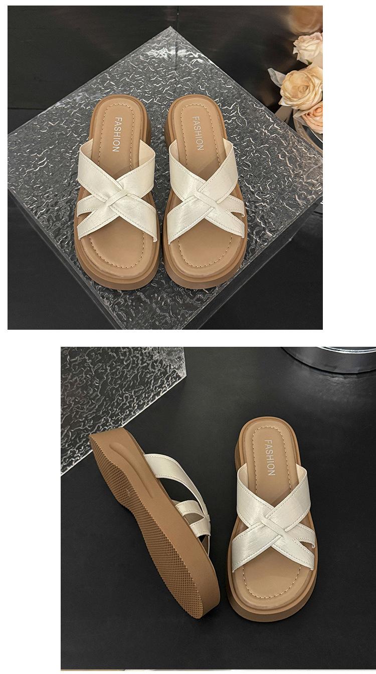 Sandalias de Suela Gruesa Estilo Francés para Mujer, Verano 2025 Nuevas Pantuflas Planas de Gama Alta con Tiras Cruzadas para Combinar con Vestidos