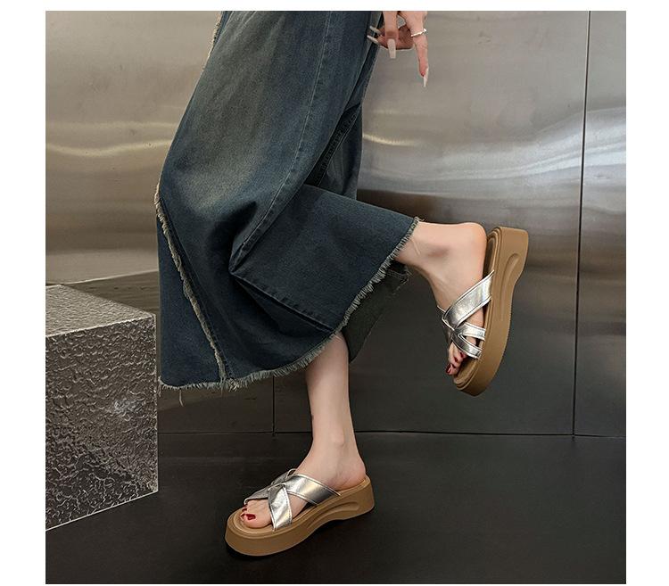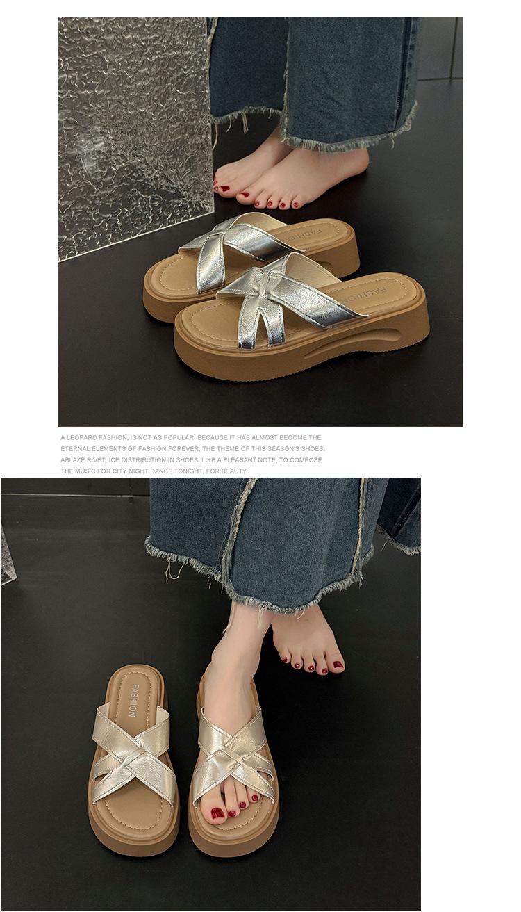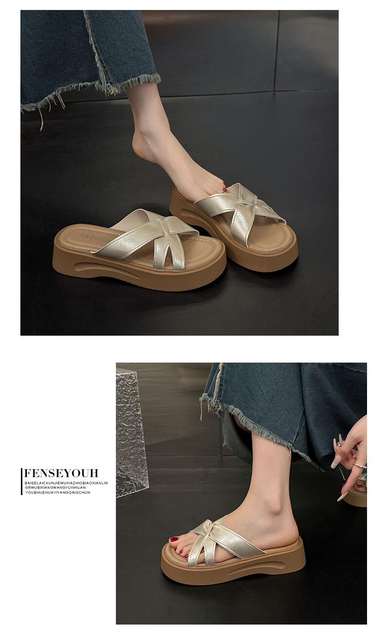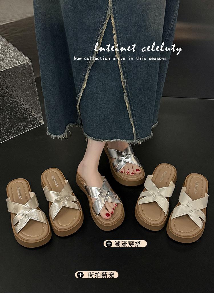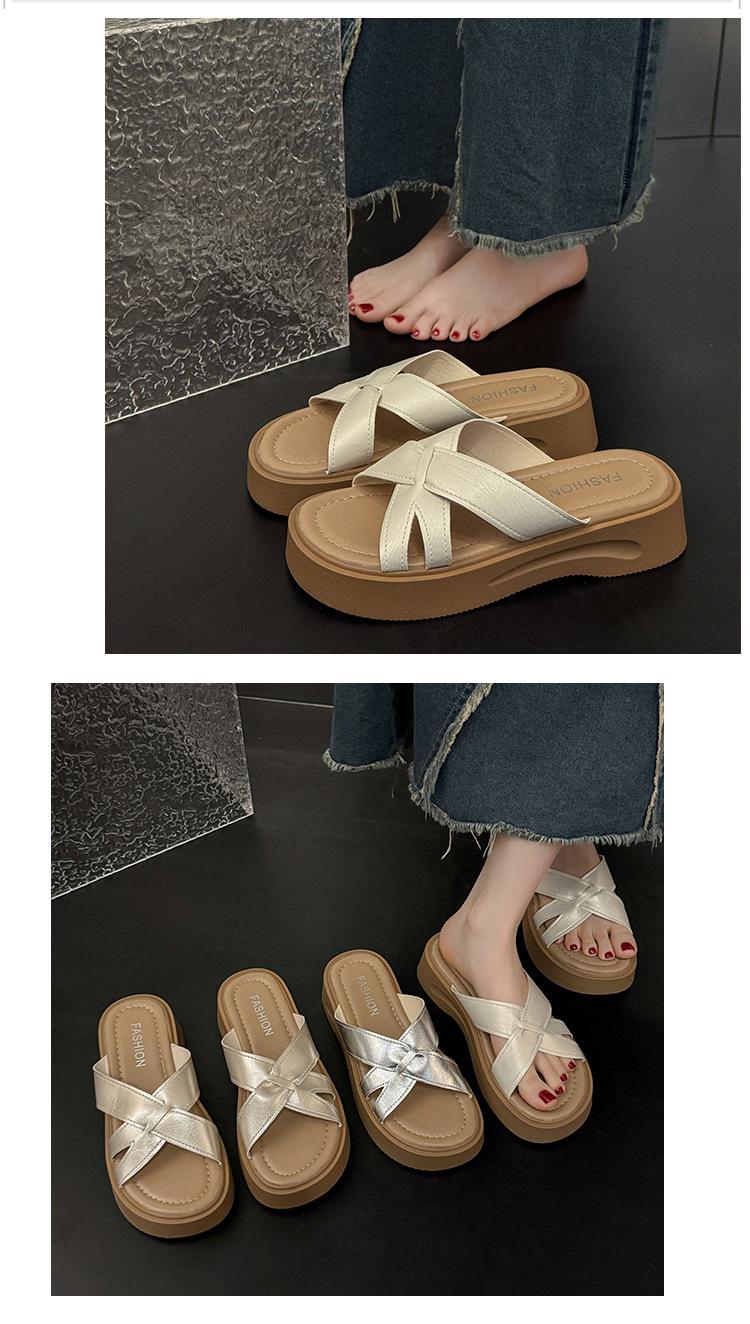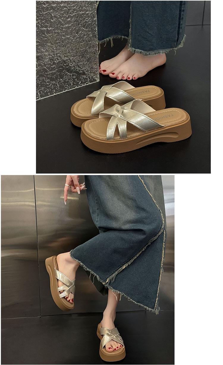 Sandalias de Suela Gruesa Estilo Francés para Mujer, Verano 2025 Nuevas Pantuflas Planas de Gama Alta con Tiras Cruzadas para Combinar con Vestidos