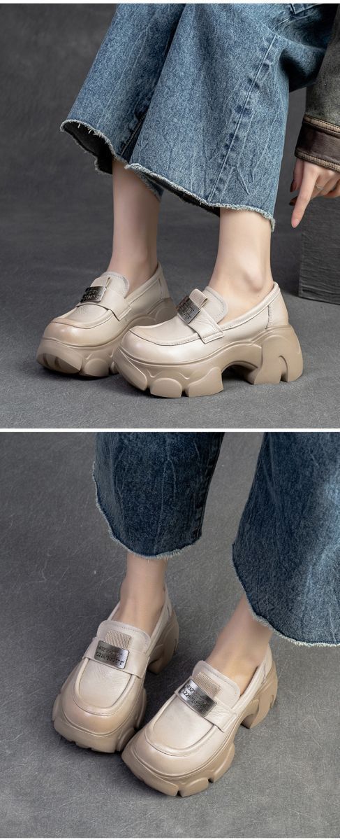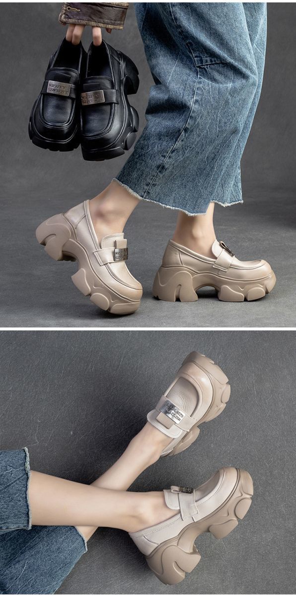 Mocasines Retro para Mujer 2025 Primavera y Otoño Nuevos Mary Jane Pequeños Slip-On Aumentadores de Altura Zapatos Casuales