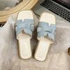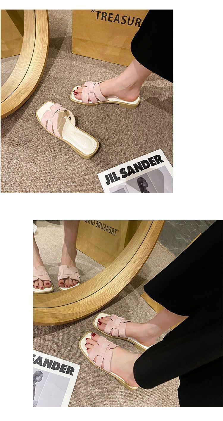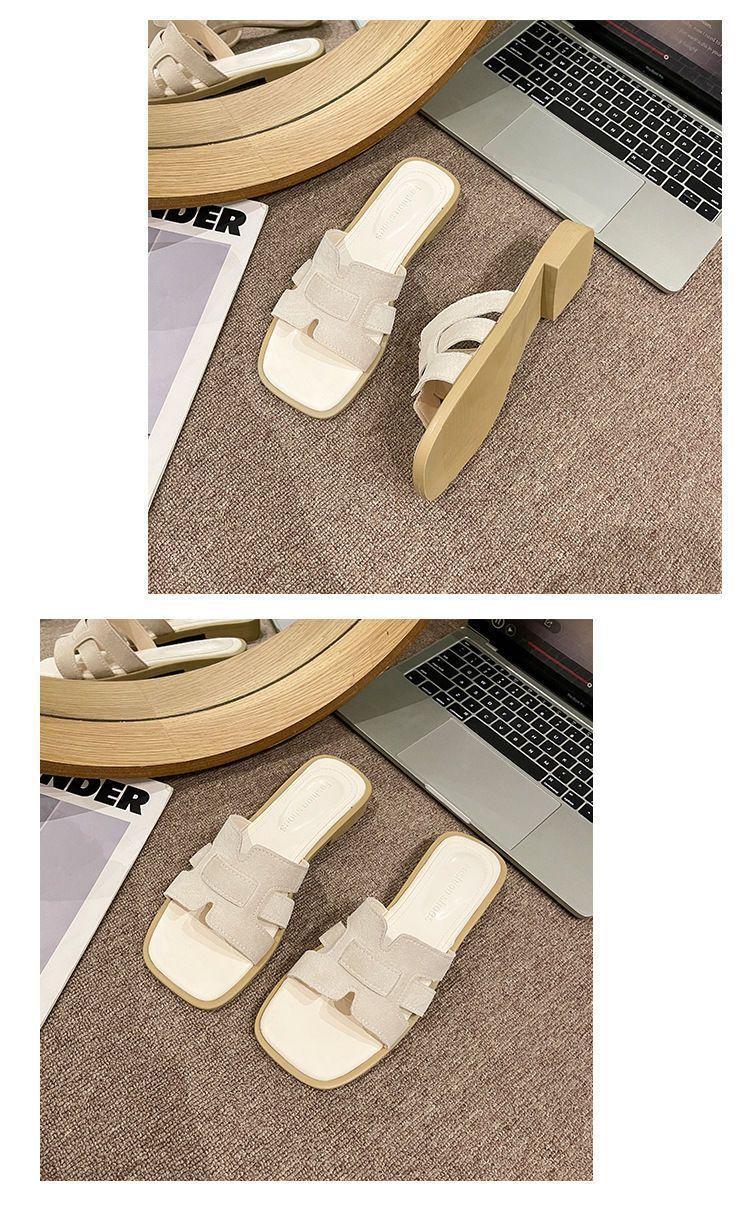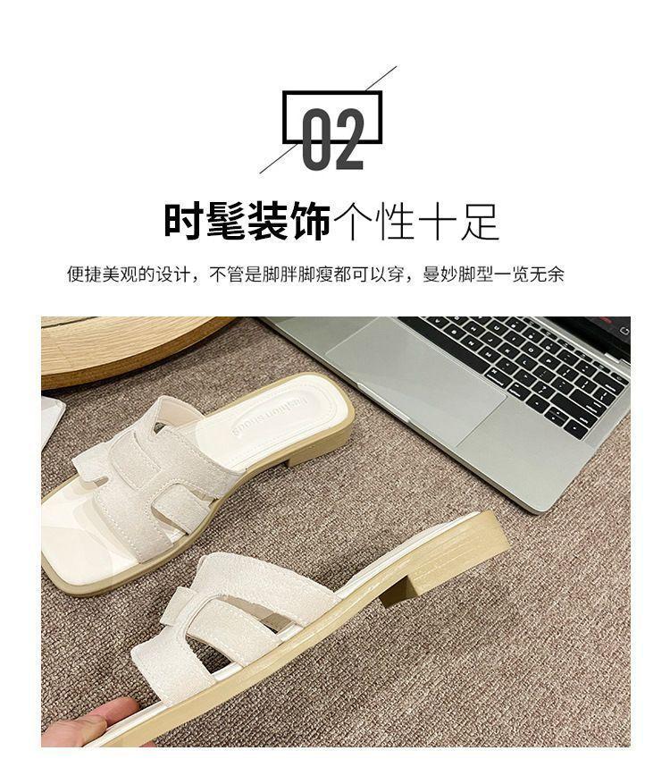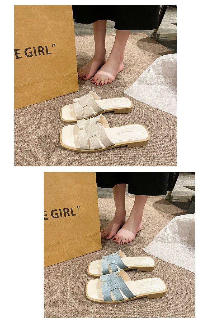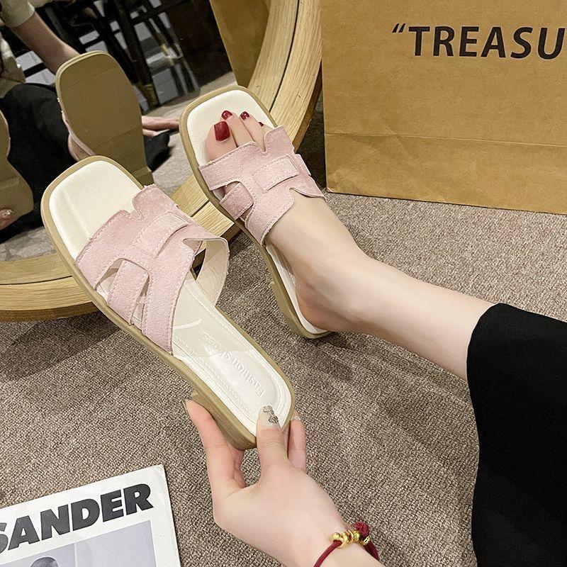 Zapatos bajos franceses con falda chanclas de playa para mujer ropa de verano 2025 nuevo estilo coreano versátiles zapatillas de una tira