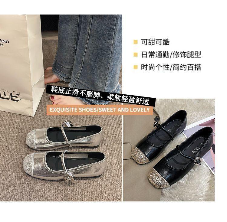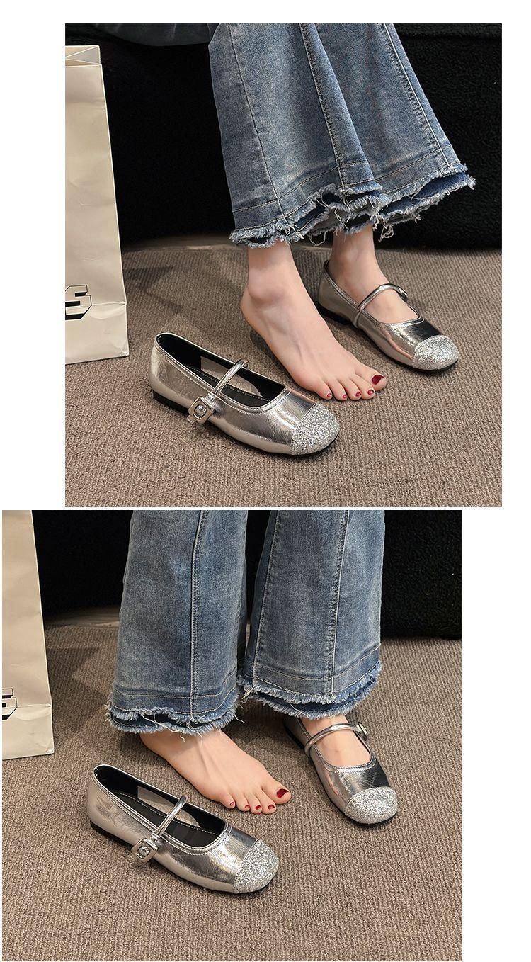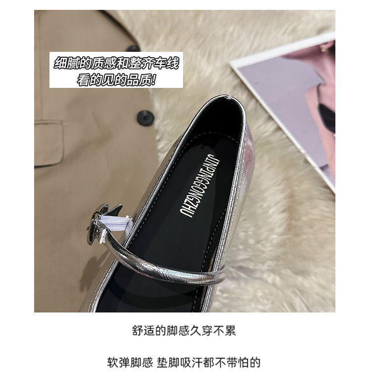 Zapatos Mary Jane plateados para mujer 2025 Verano Nuevo Versátil Moderno Suela Suave Antideslizante Hebilla Zapatos Tipo Beanie