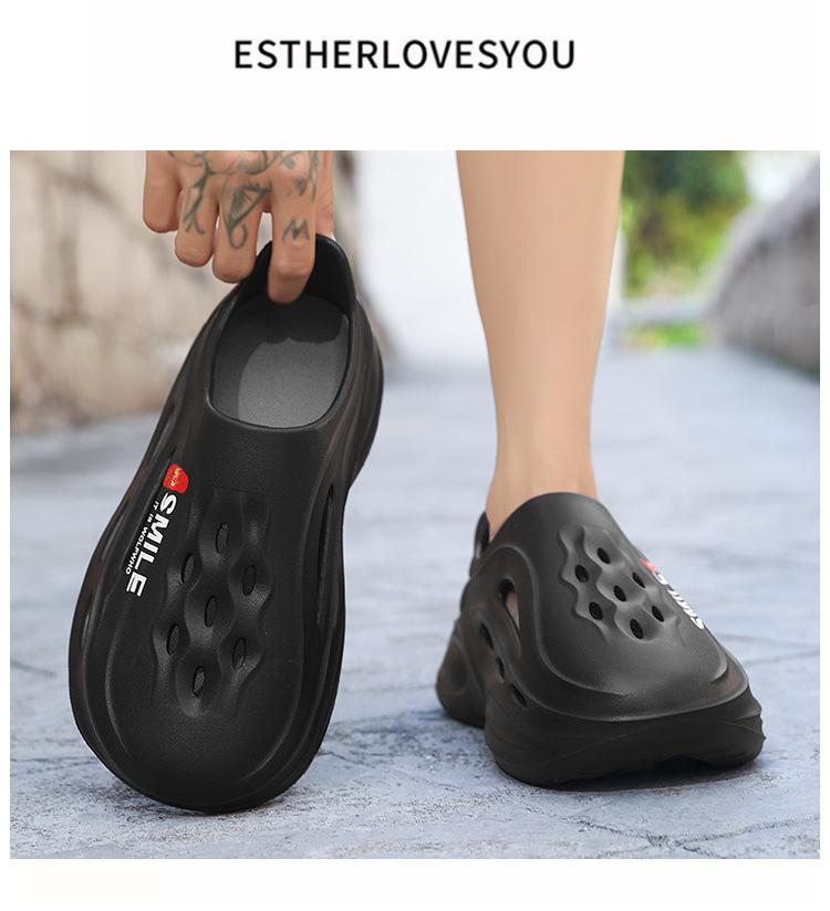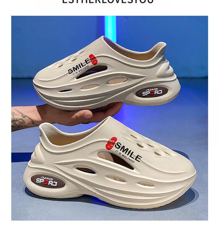 Zapatos de Agujeros Ropa Exterior de Verano para Hombre Suela Gruesa Sensación de Mierda al Pisar Antideslizantes Sandalias Versátiles Ropa de Playa Resistentes al Desgaste Sandalias Deportivas