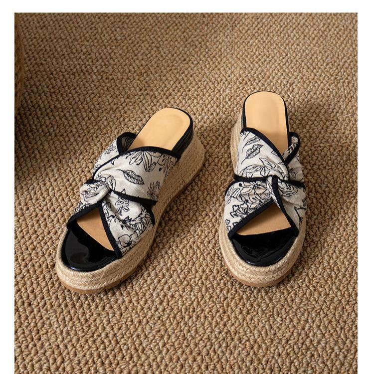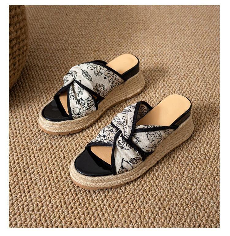 Zapatillas Retro Bordadas de Cuña para Mujer Verano 2025 Nuevos Zapatos de Playa para Aumentar la Altura para Exterior Sandalias de Tacón Alto con Punta Abierta