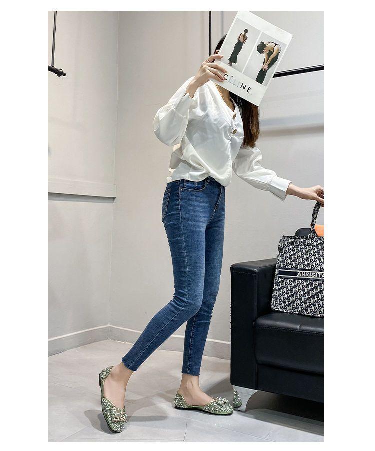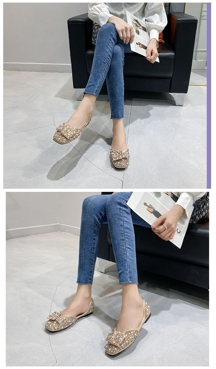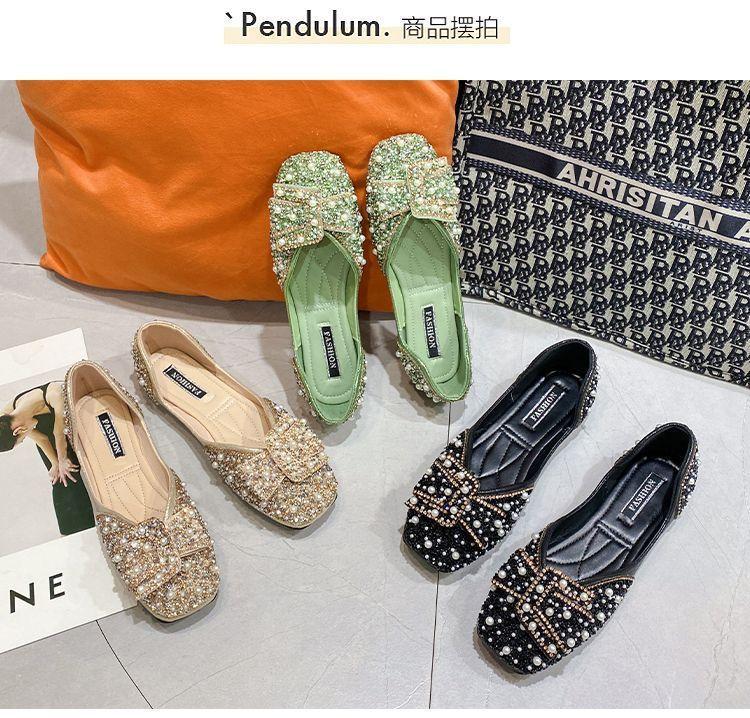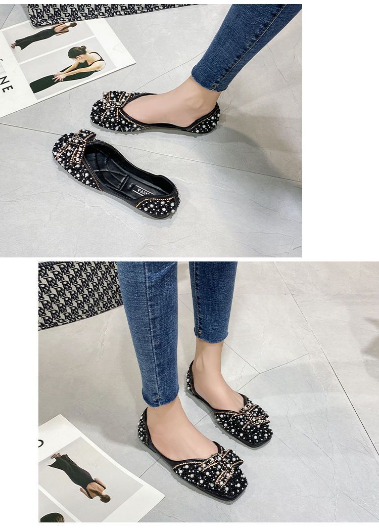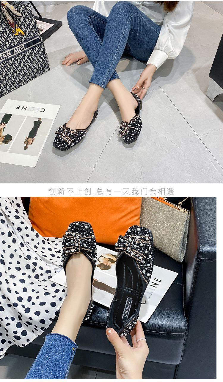 Zapatos planos de moda para mamá perezosa, zapatos individuales planos de fragancia pequeña, mujer 2025 verano otoño nuevos zapatos de frijol versátiles