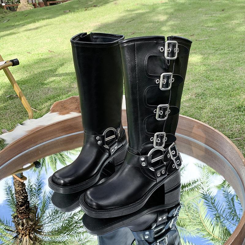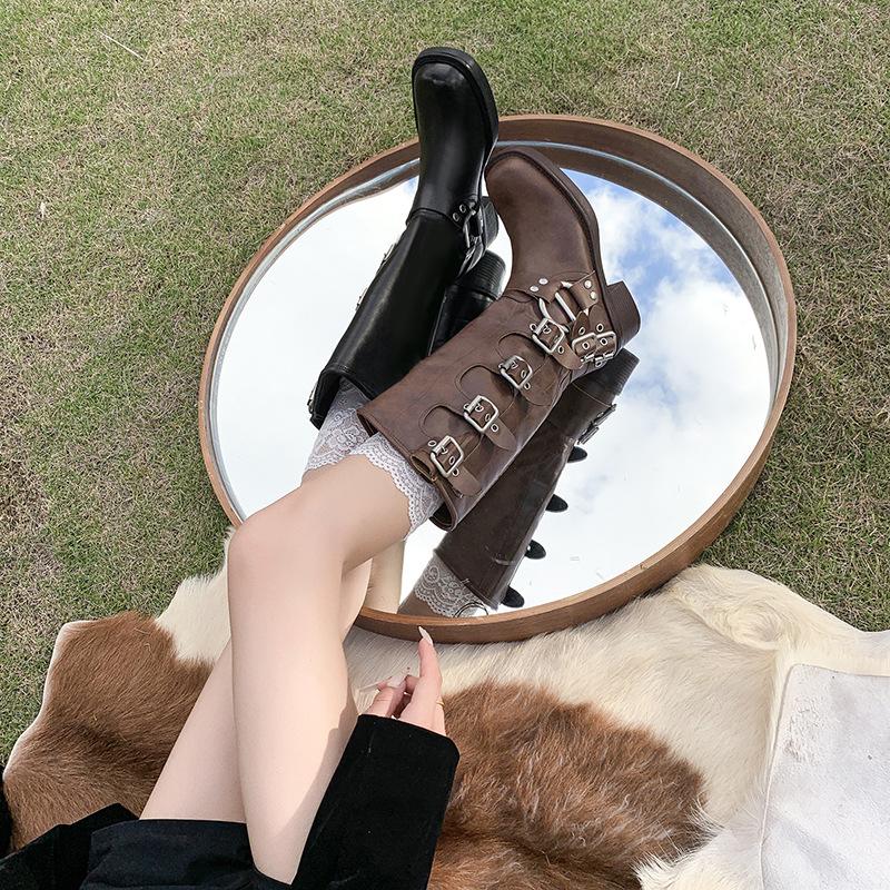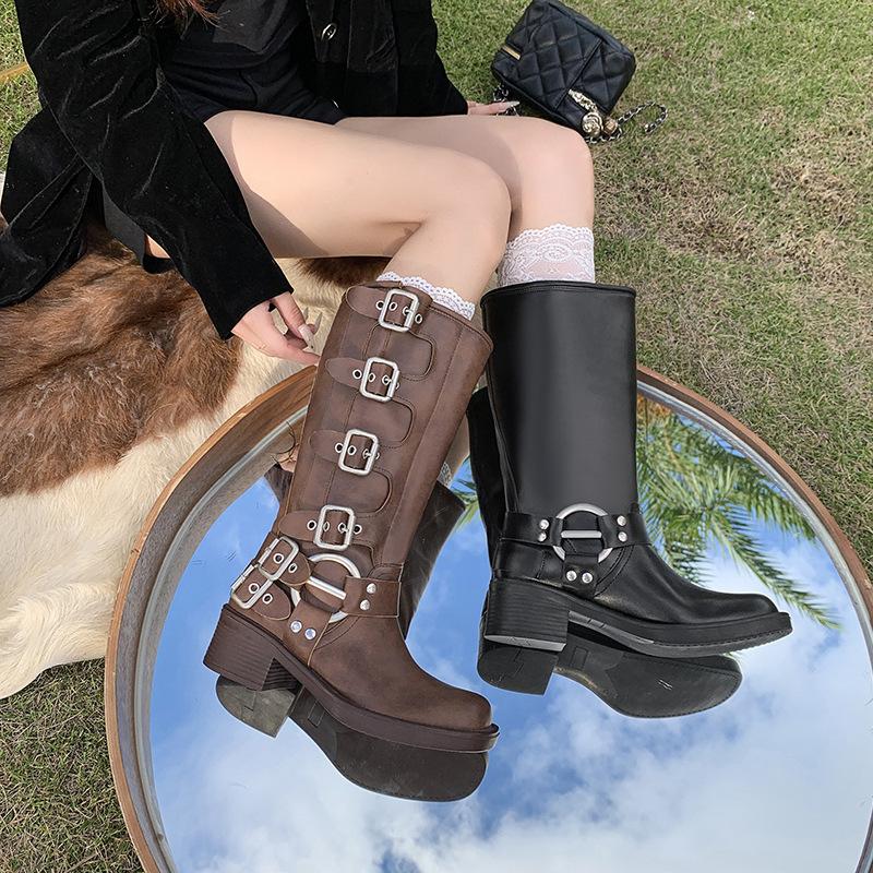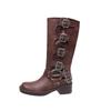 Primavera 2025 Nuevas Botas de Mujer de Caña Alta con Punta Redonda Literarias Retro PU Parte Superior Tacón Plano Moda Botas de Caballero Otoño Invierno Botas Largas