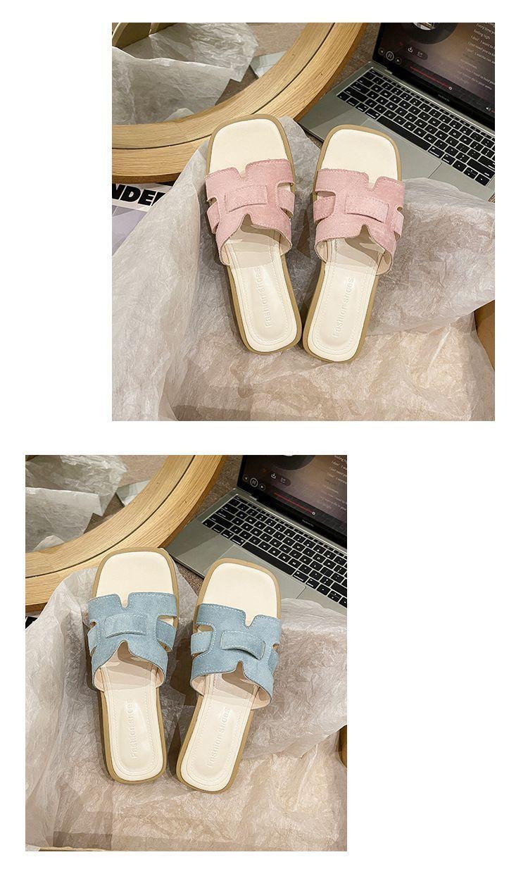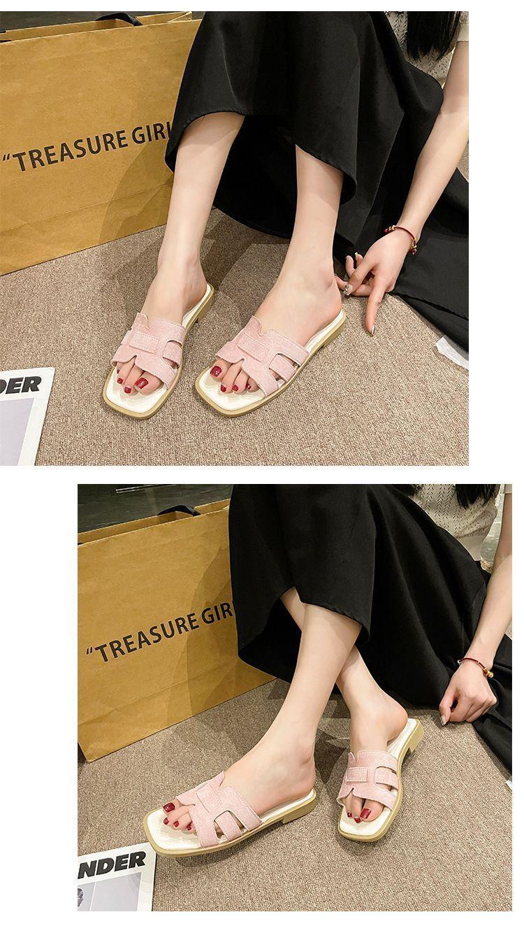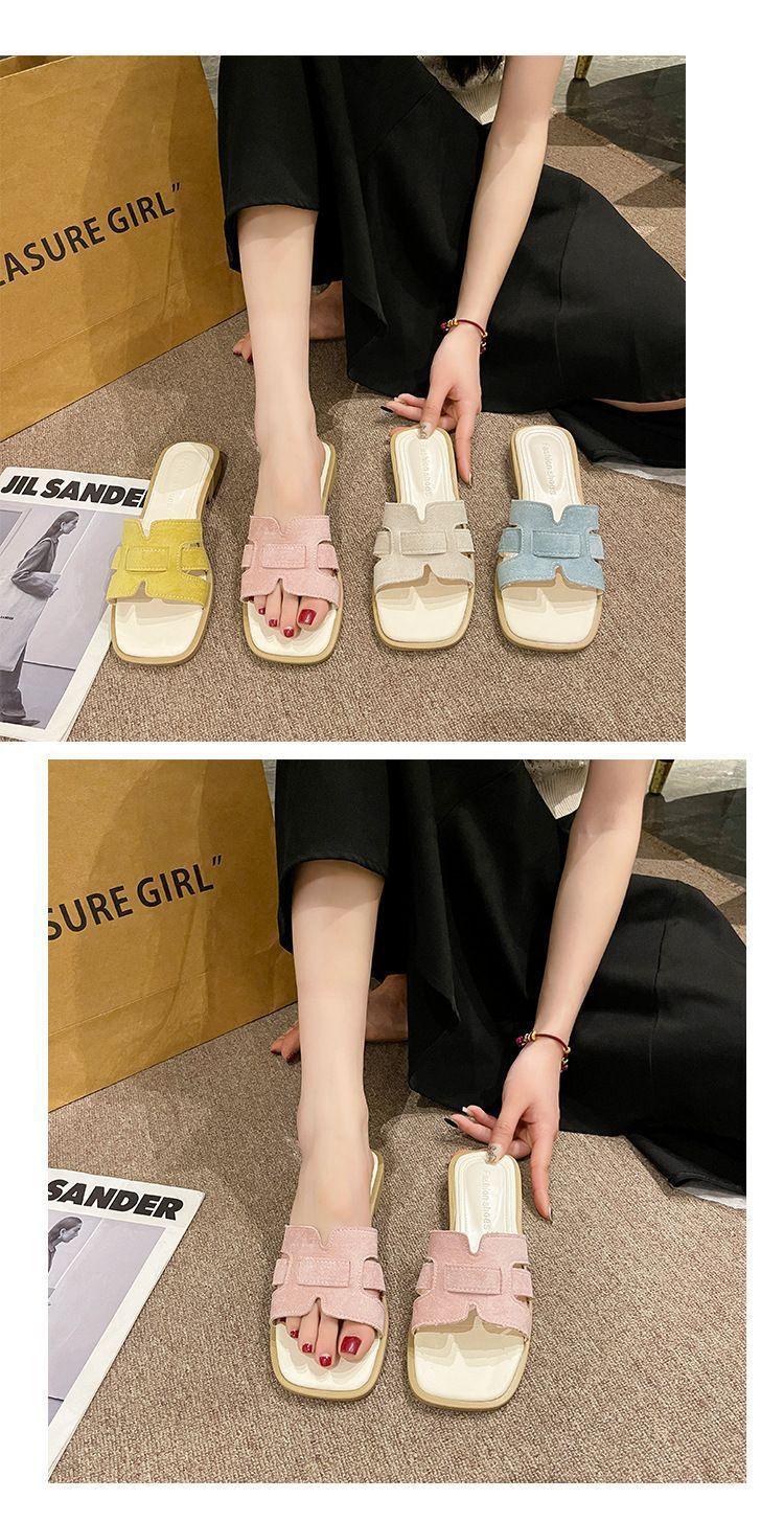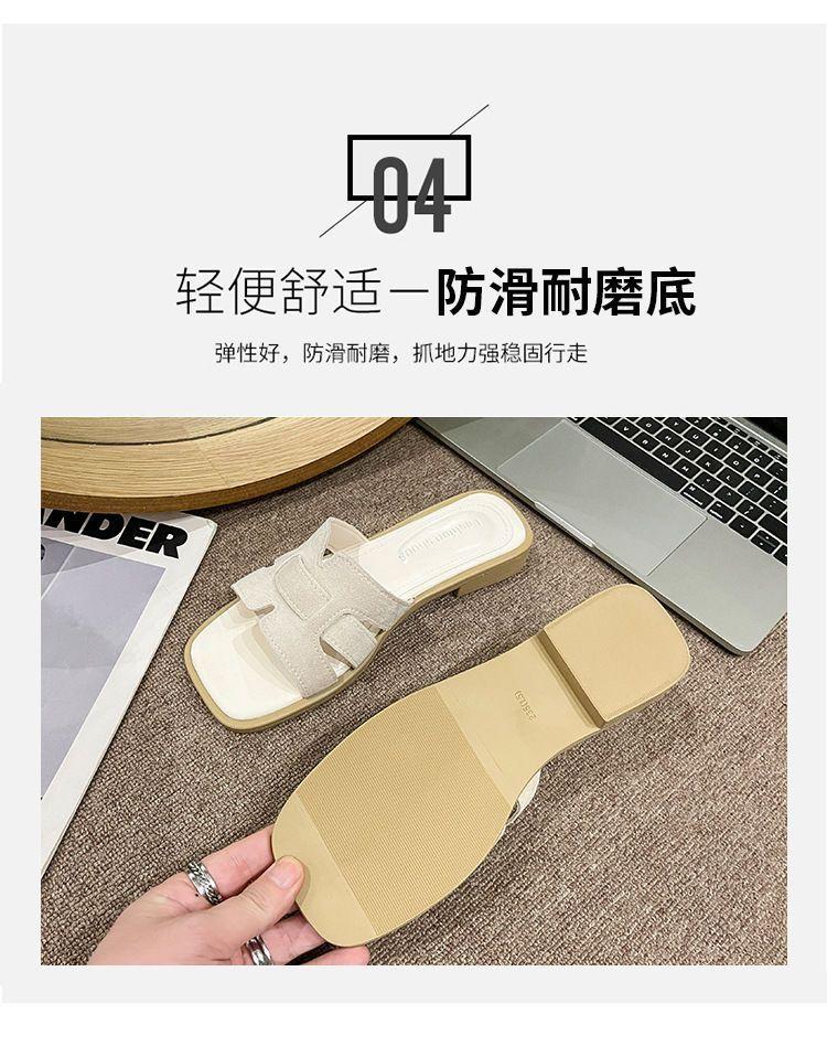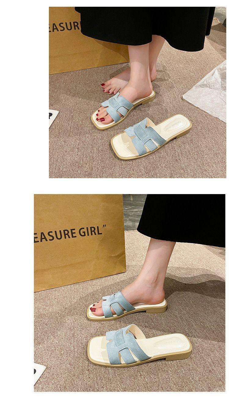 Sandalias de playa francesas de tacón bajo 2025 nuevo estilo coreano versátiles con vestidos junto al mar zapatillas de una tira mujer verano