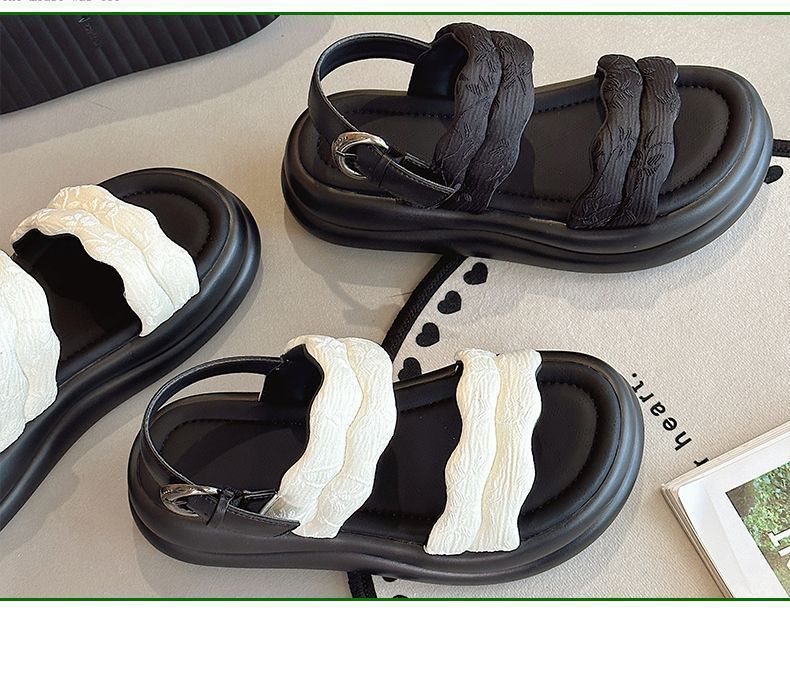 Sandalias para mujer verano 2025 verano nueva moda celebridad de internet súper calientes hebilla de una palabra suela gruesa con falda sandalias mujer