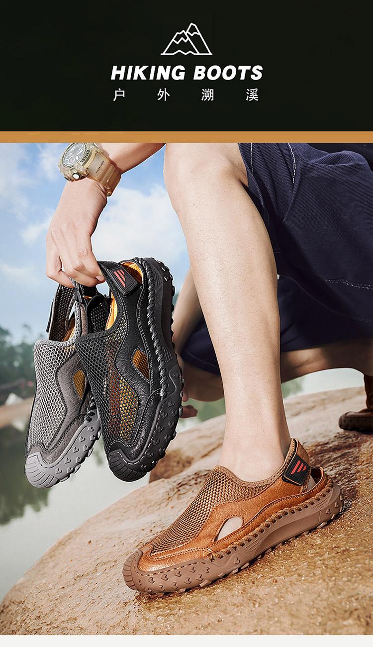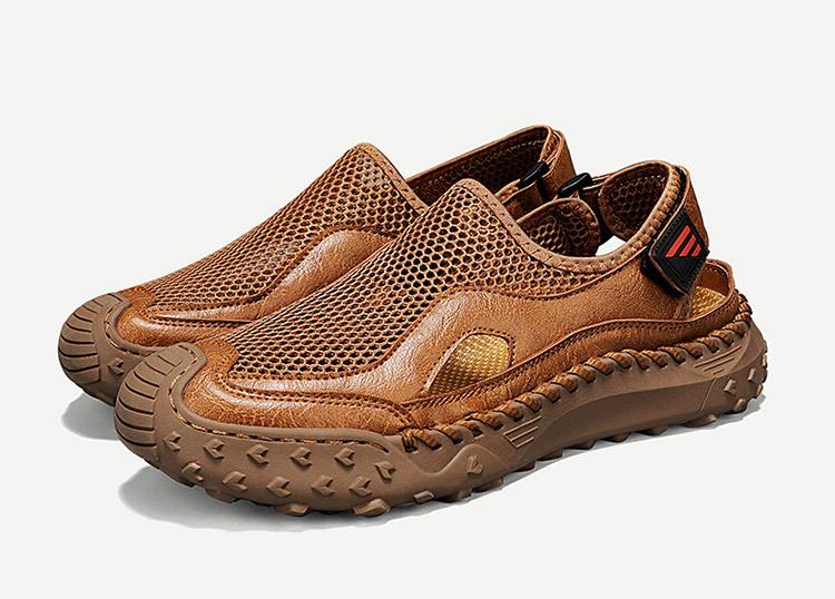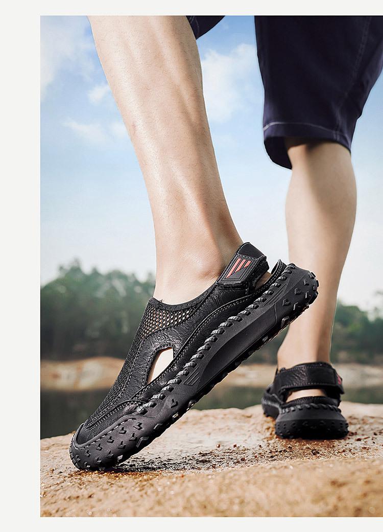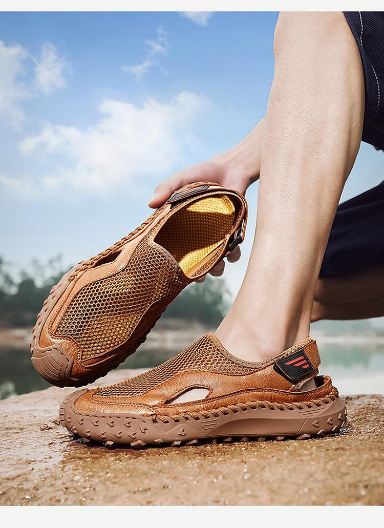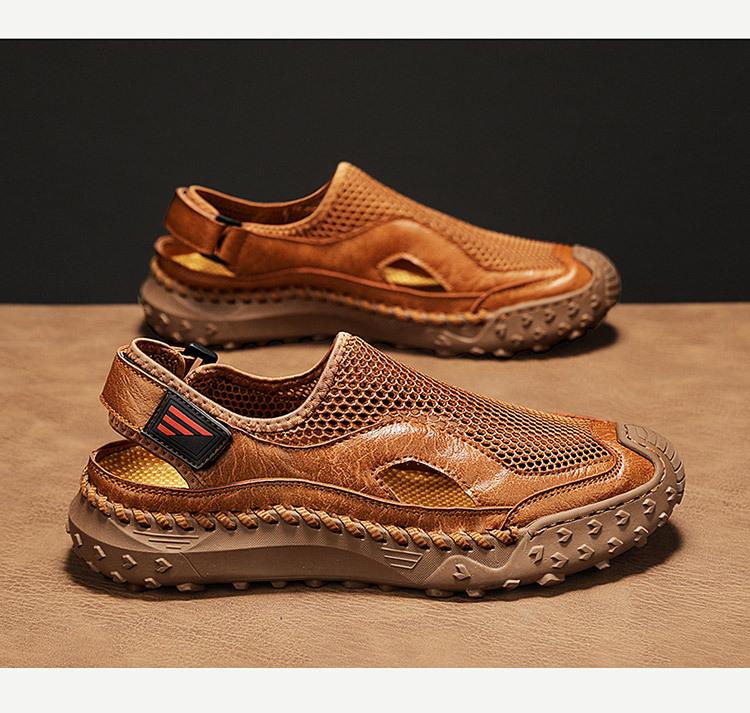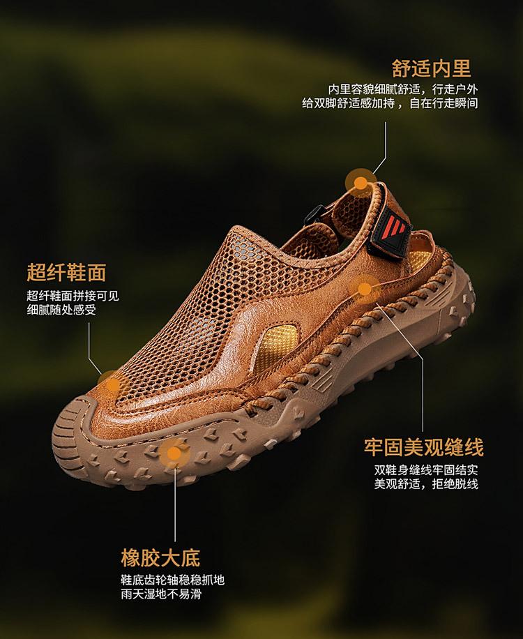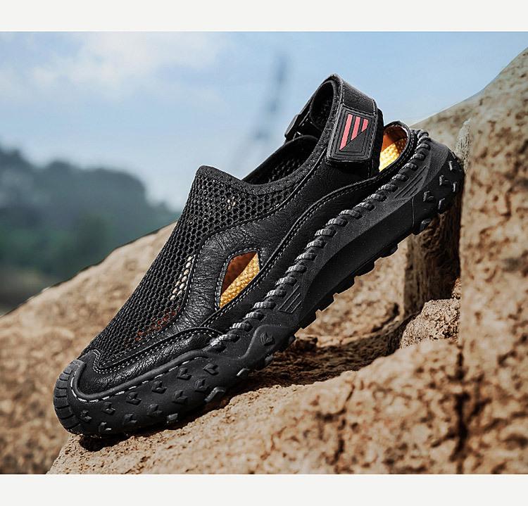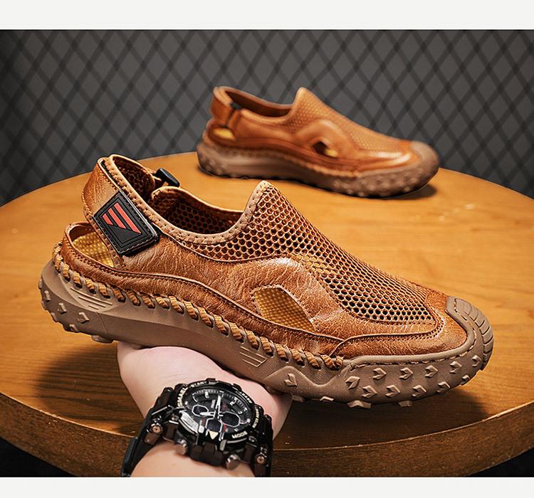 Verano Nuevos Zapatos de Malla Punta-Punta para Hombre Comercio Exterior Talla Grande Suela Gruesa Cosidos a Mano Cuero Genuino Transpirables Casual Zapatos de Hombre