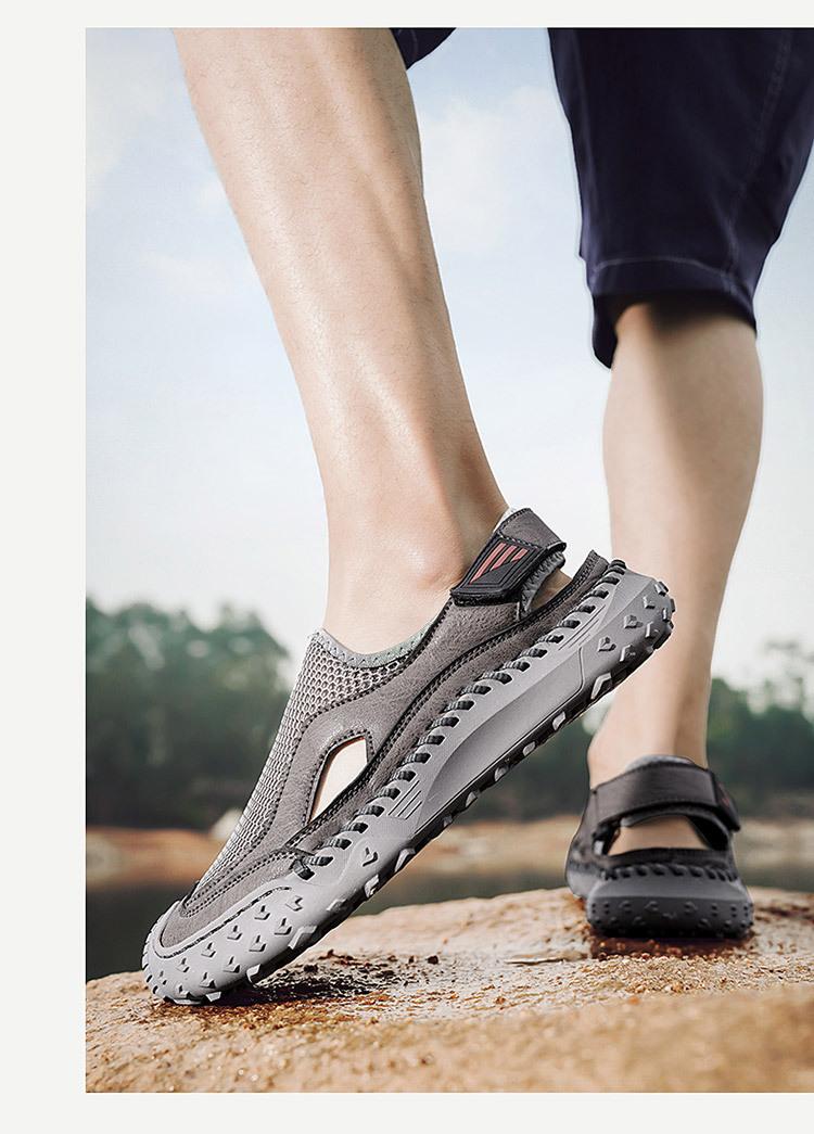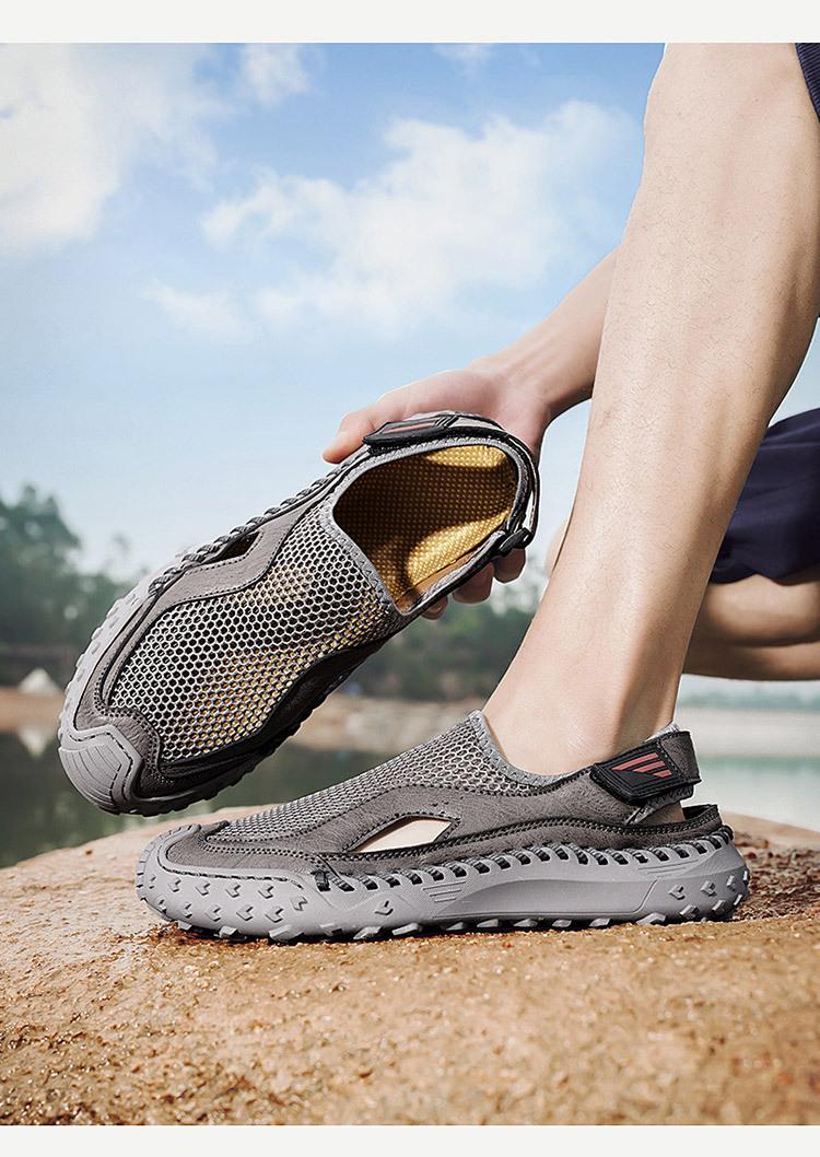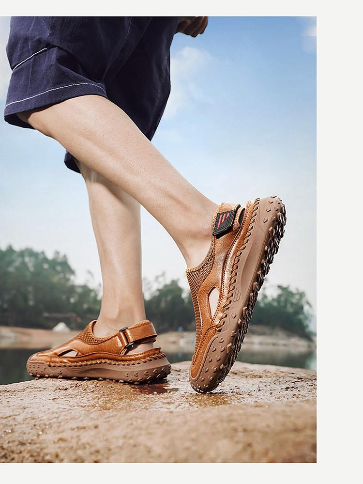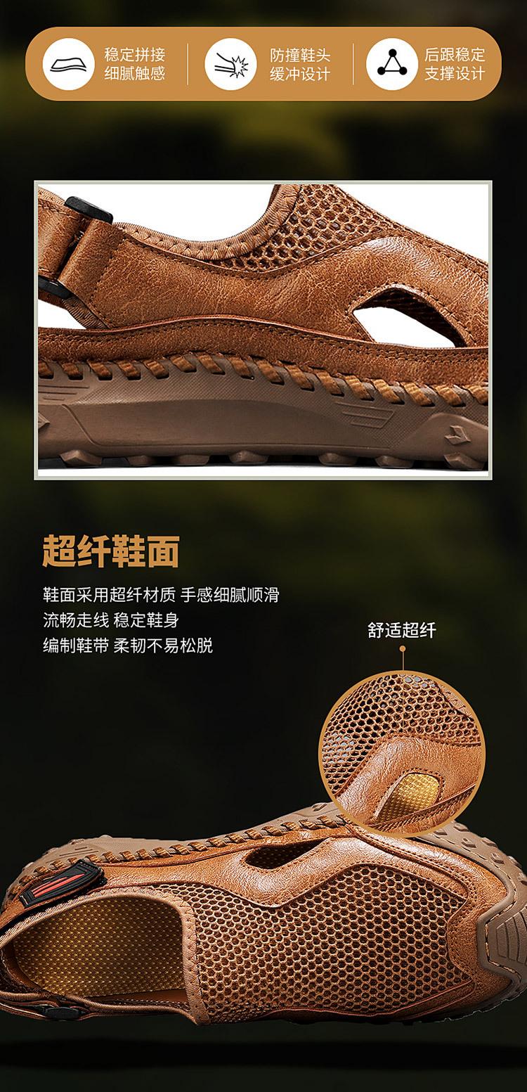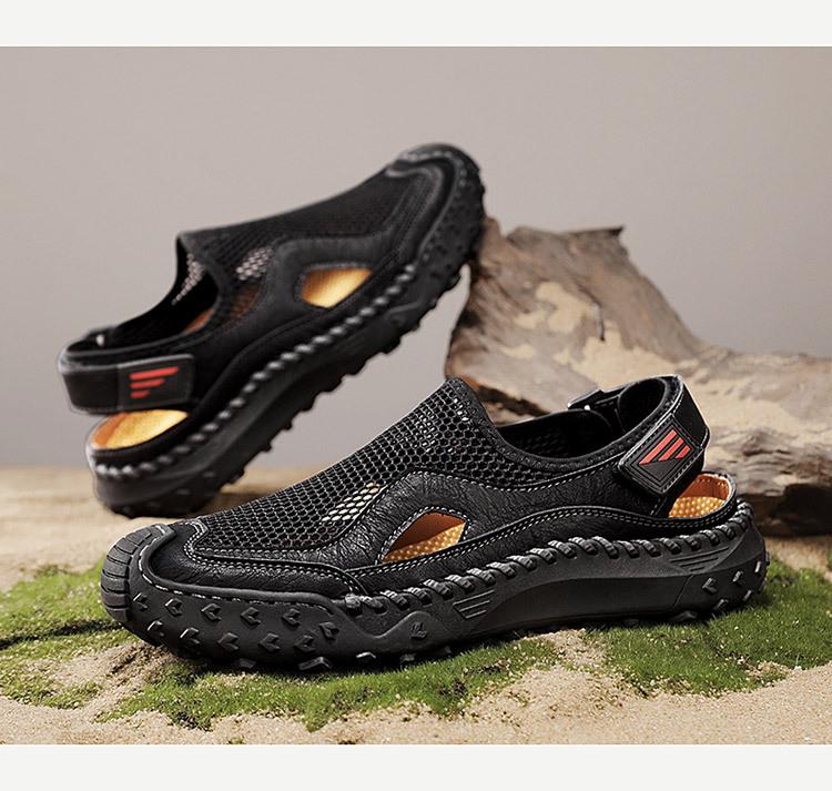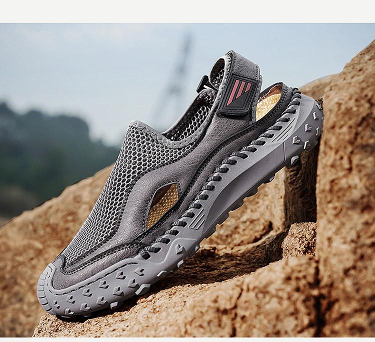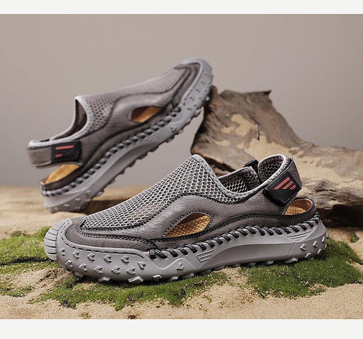 Verano Nuevos Zapatos de Malla Punta-Punta para Hombre Comercio Exterior Talla Grande Suela Gruesa Cosidos a Mano Cuero Genuino Transpirables Casual Zapatos de Hombre