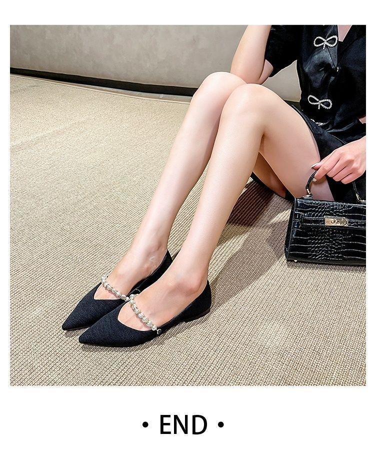 Zapatos Individuales de Verano Literarios con Correa 2024 para Mujer, Zapatos Planos, Suela Suave, Punta Afilada con Pedrería, Boca Escotada, Zapatos de Dama