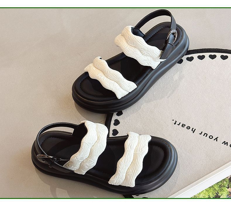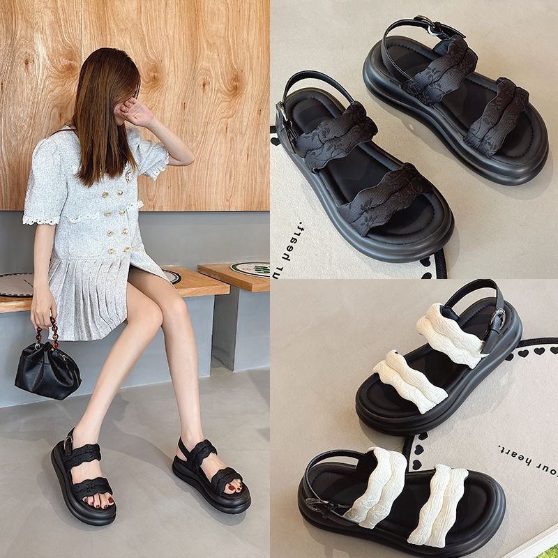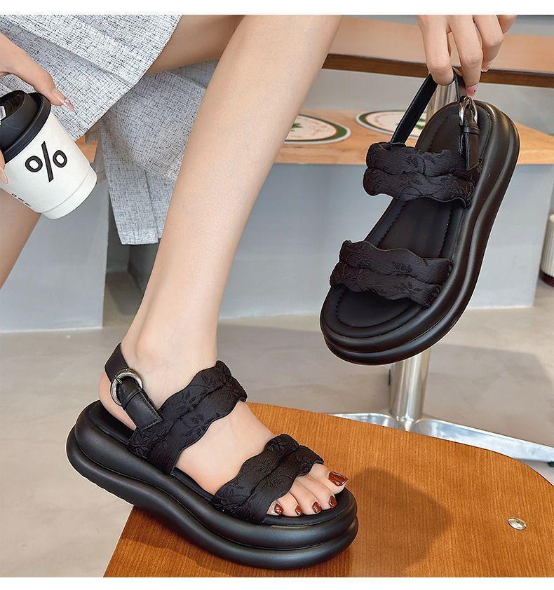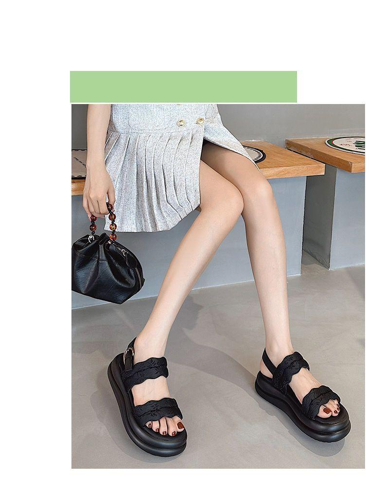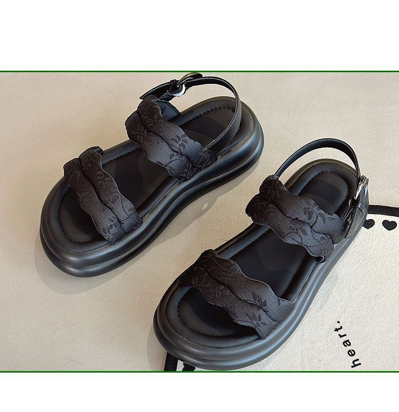 Sandalias de Verano 2025 Estilo Hada Moda Hebilla de Una Tira Estilo Nacional Playa Suela Gruesa con Vestido Sandalias Romanas de Mujer