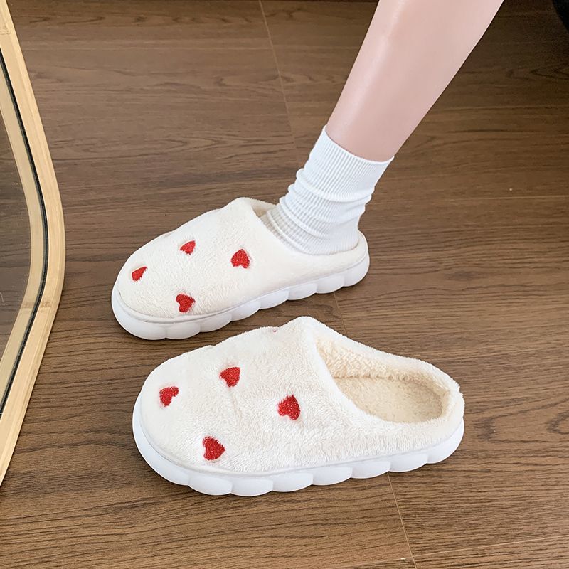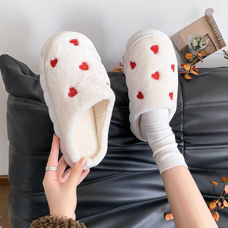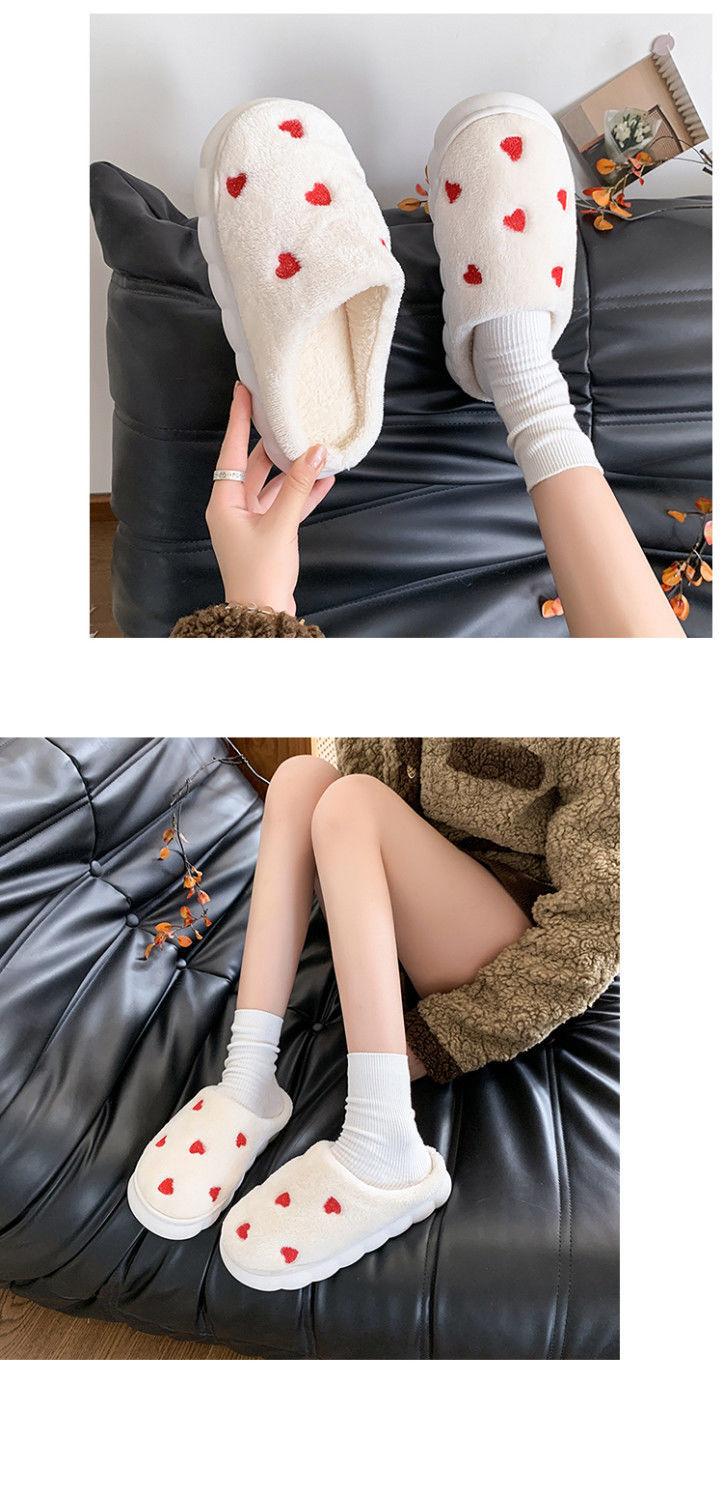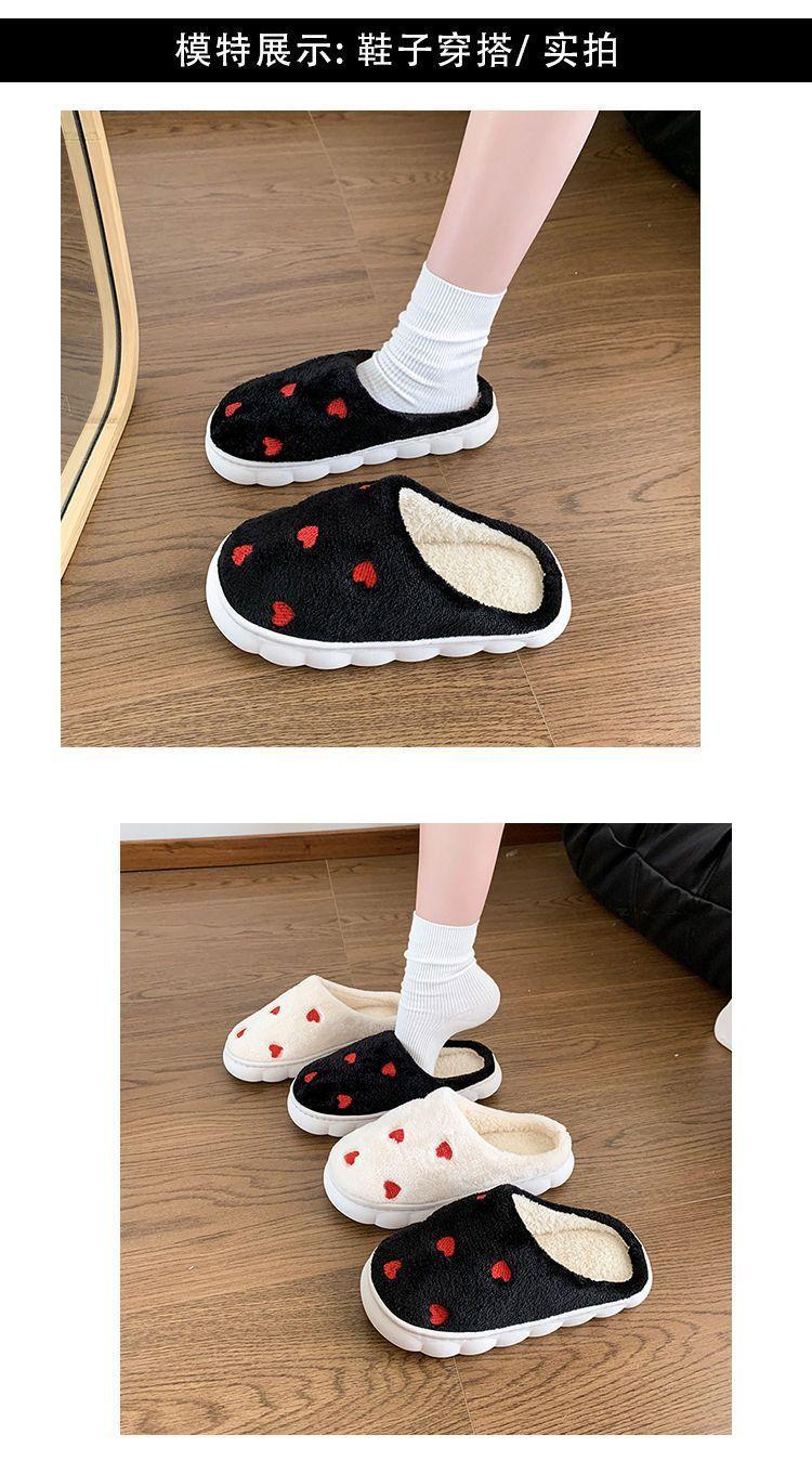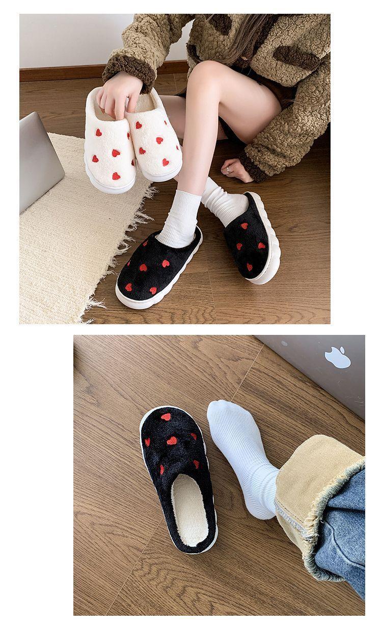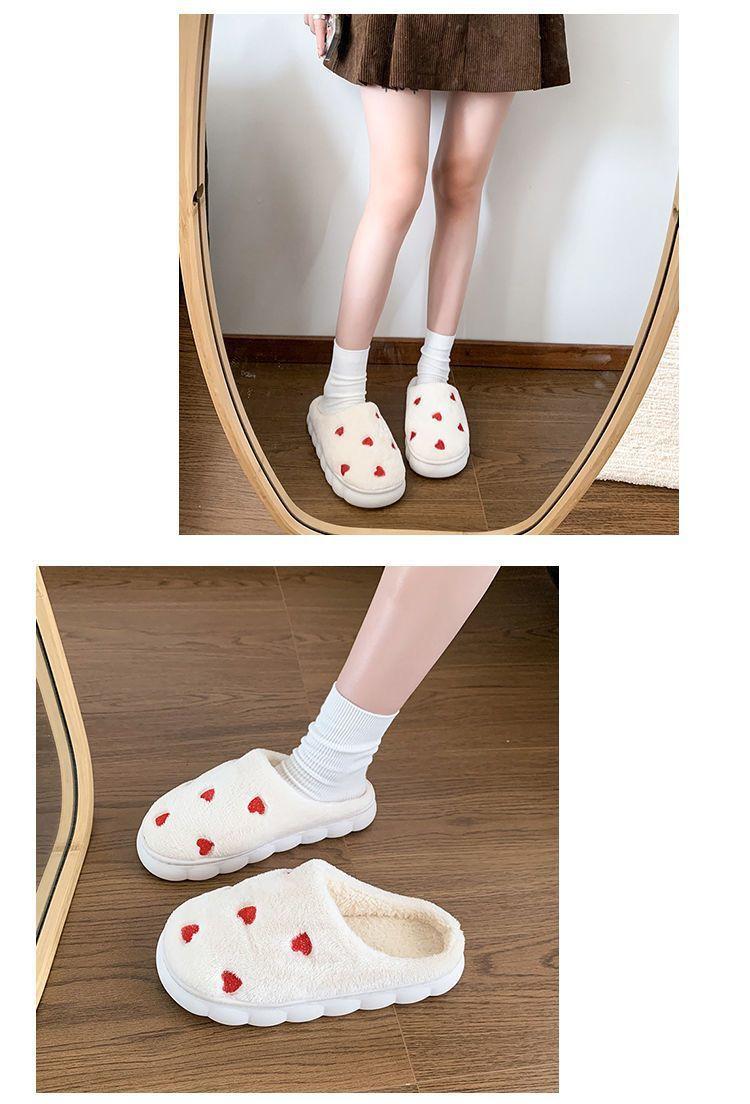 Pantuflas de Felpa Silenciosas Antideslizantes para Interior del Hogar, Pantuflas de Punta Cerrada Versátiles y a la Moda para Chica Corazón, Nuevo Otoño/Invierno 2025
