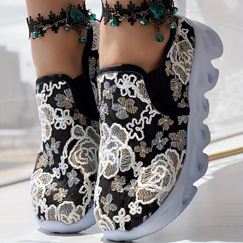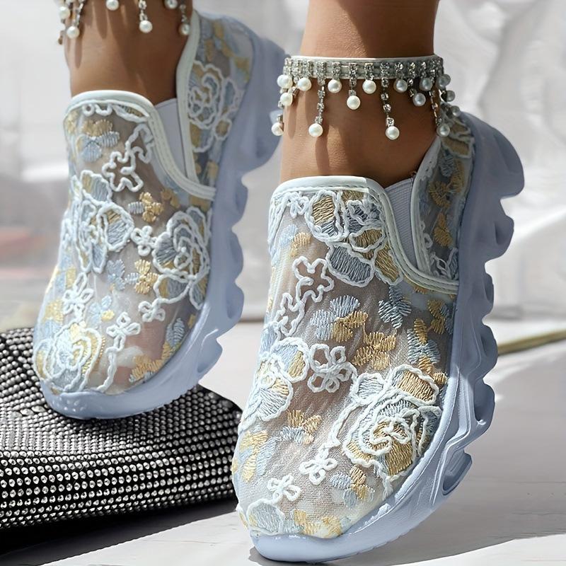 Nuevos Zapatos Individuales de Malla de Encaje Transpirable de Caña Baja para Comercio Exterior para Mujer, Plataforma Casual Transfronteriza, Bordado, Ligeros, Zapatillas Slip-On