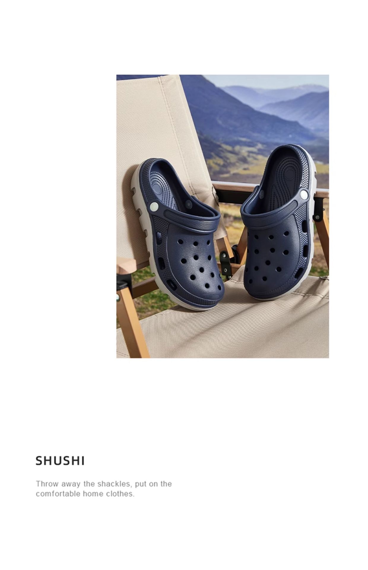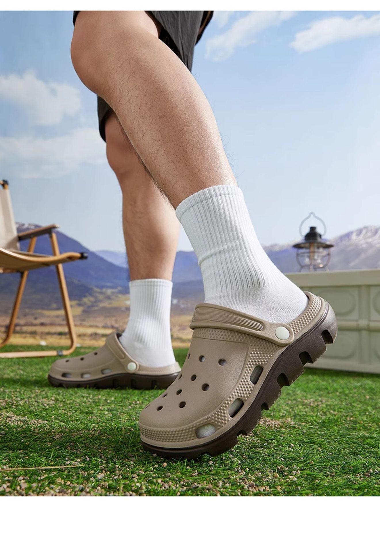 Zapatos con agujeros para hombre Verano 2025 Nuevo estilo Ropa exterior Sensación dung Suela gruesa Antideslizante Playa Sandalias y pantuflas semicubiertas para hombre