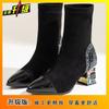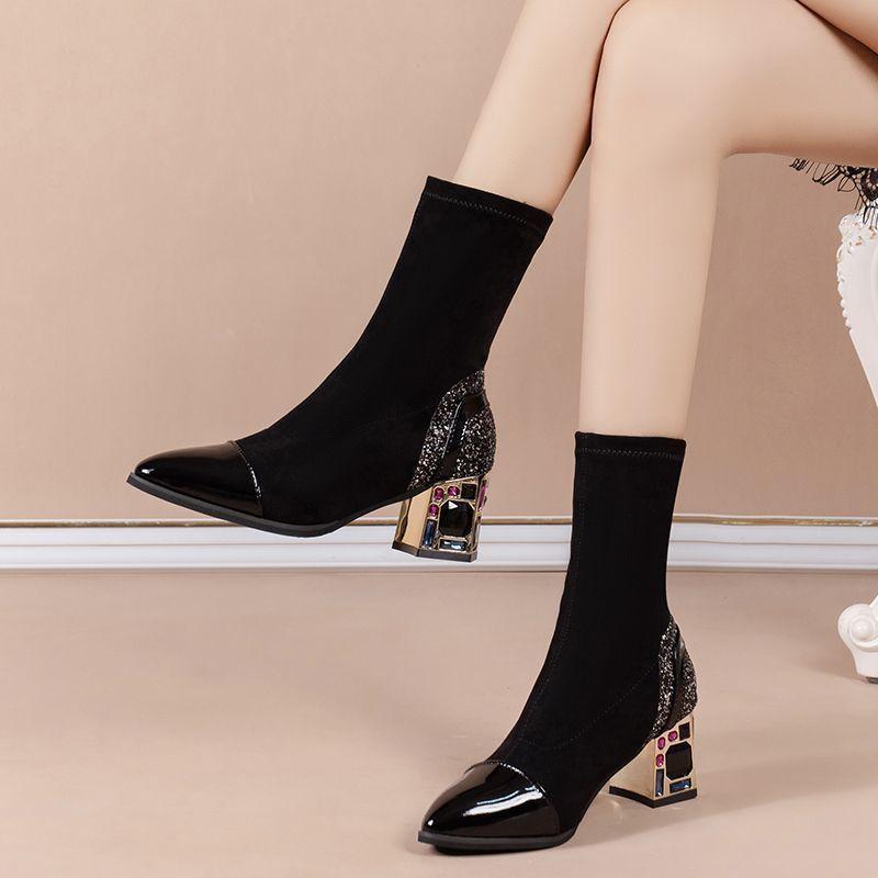 Botines de tacón grueso zapatos de moda mujer 2025 otoño e invierno nuevas botas casuales de mujer zapatos de mujer punta puntiaguda slip-on botas de media caña de mujer