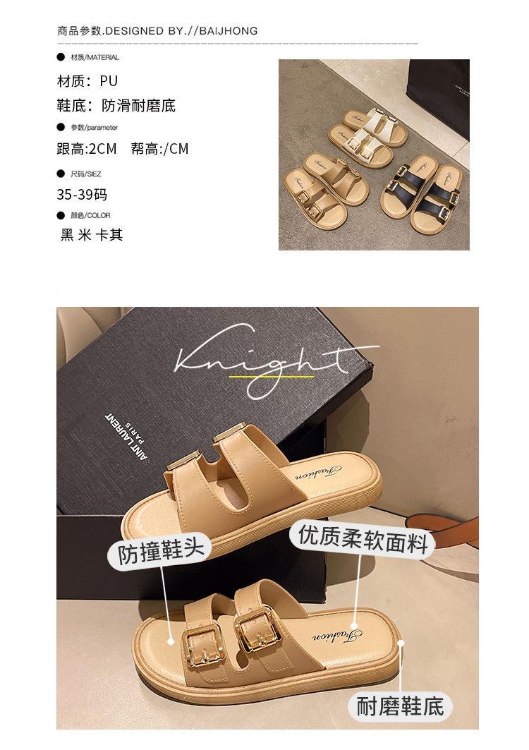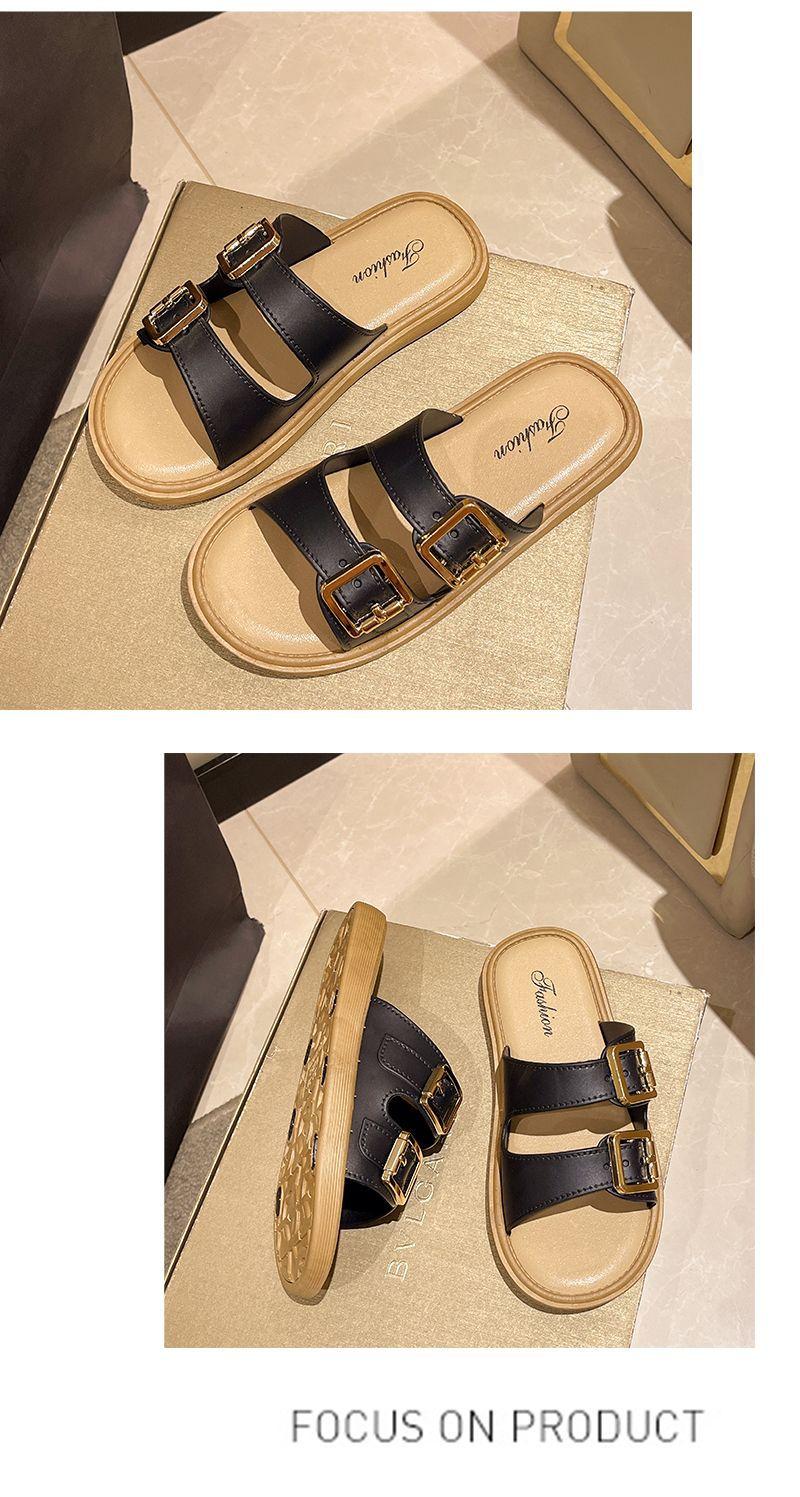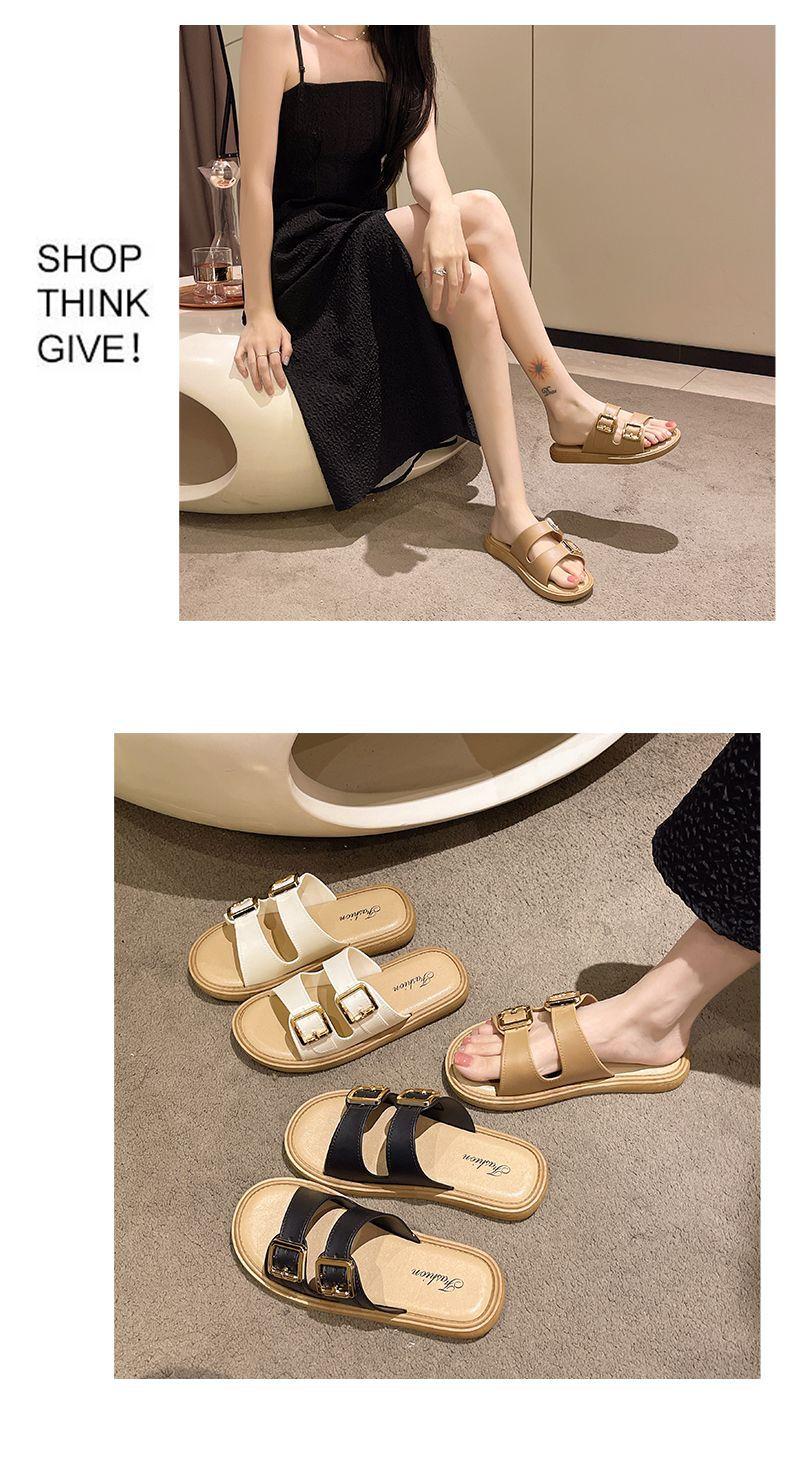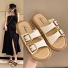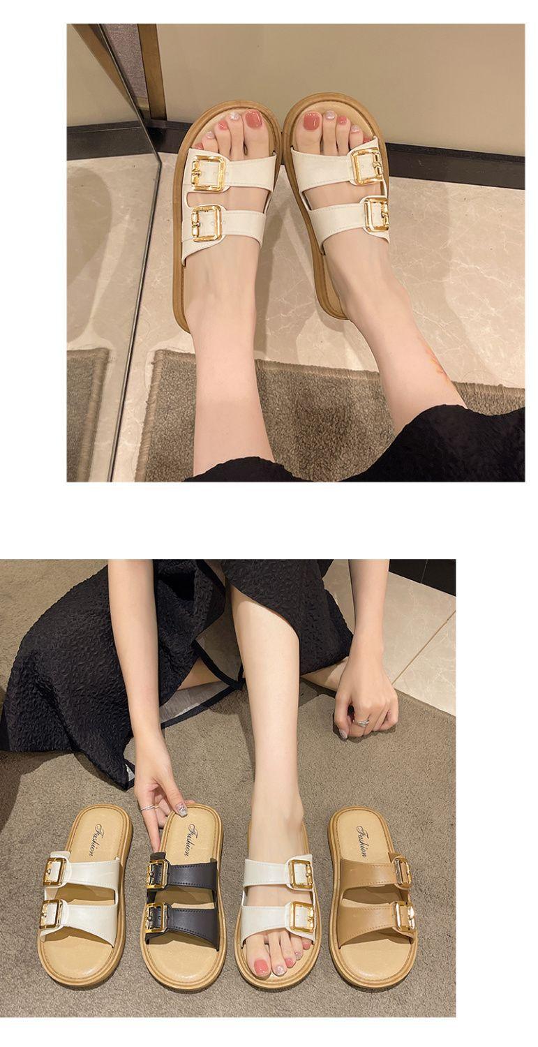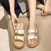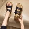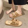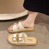 Nuevas pantuflas de moda para mujer verano 2025 nuevas planas de una tira versátiles casuales suela suave retro sandalias de playa