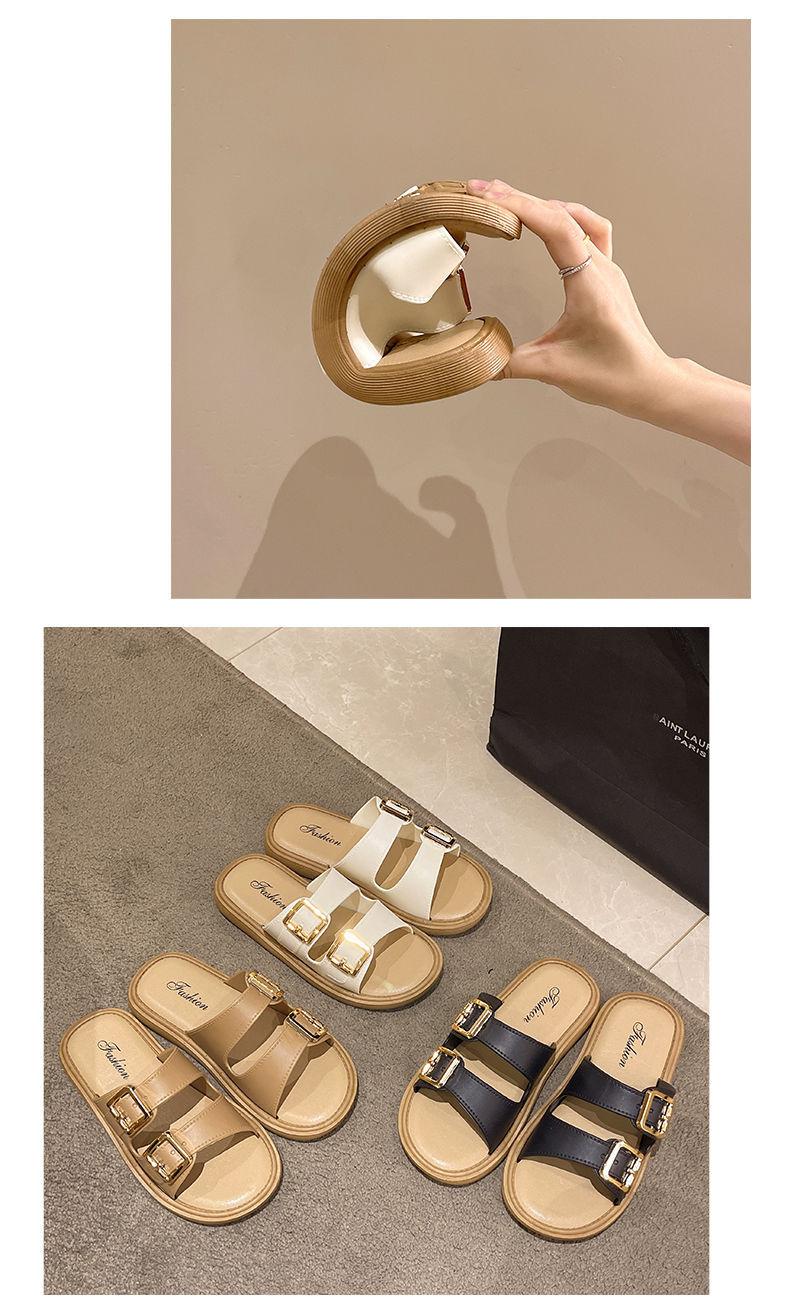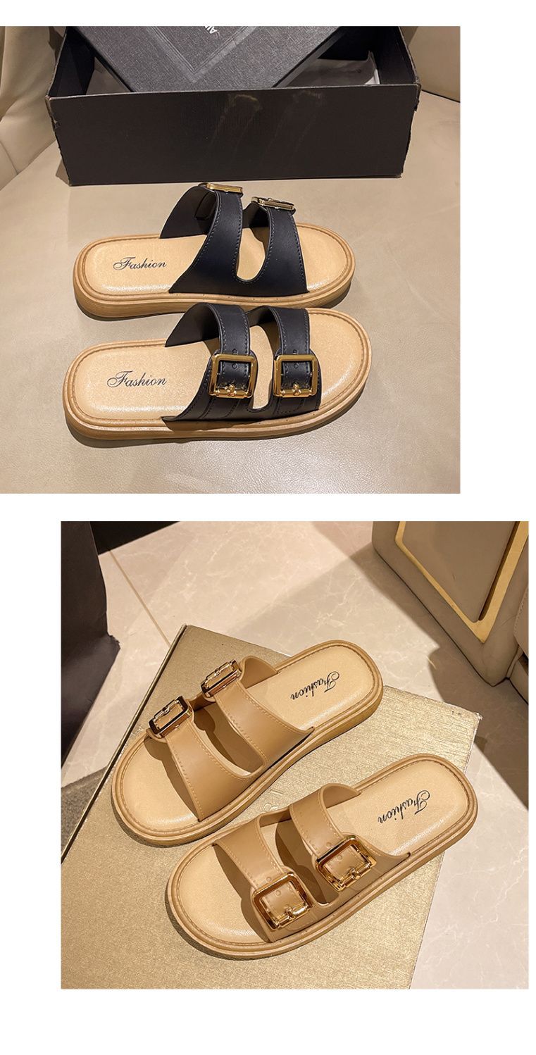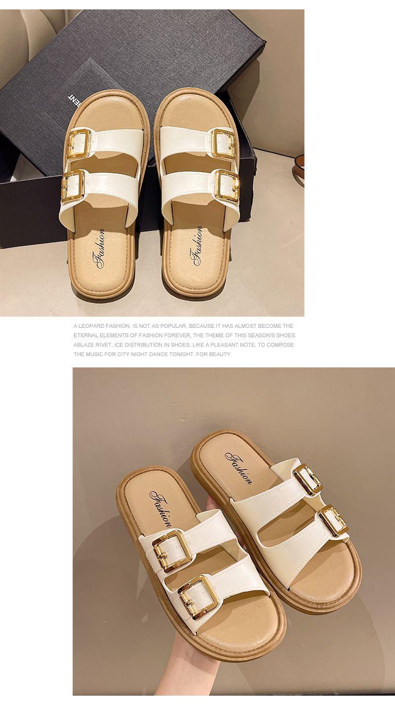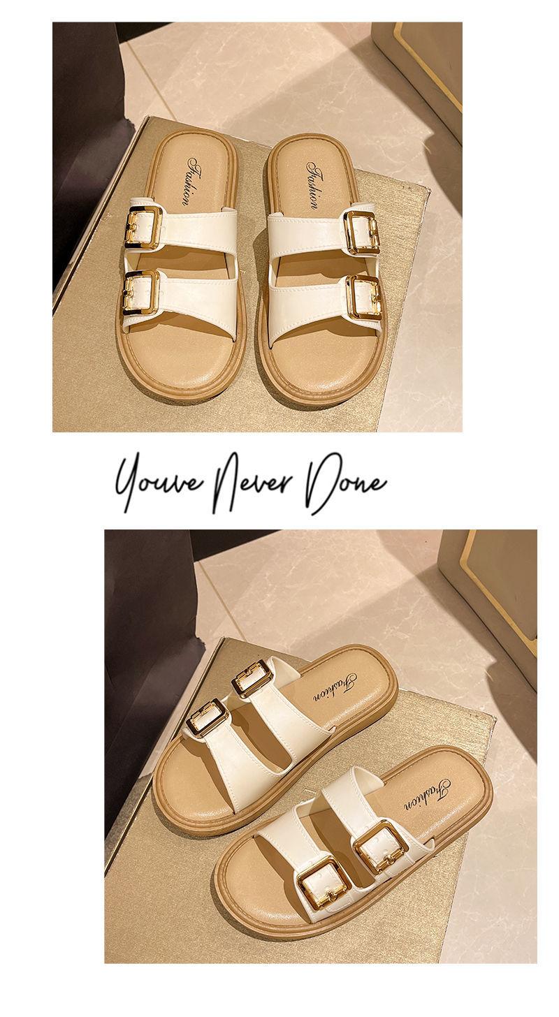 Nuevas pantuflas de moda para mujer verano 2025 nuevas planas de una tira versátiles casuales suela suave retro sandalias de playa