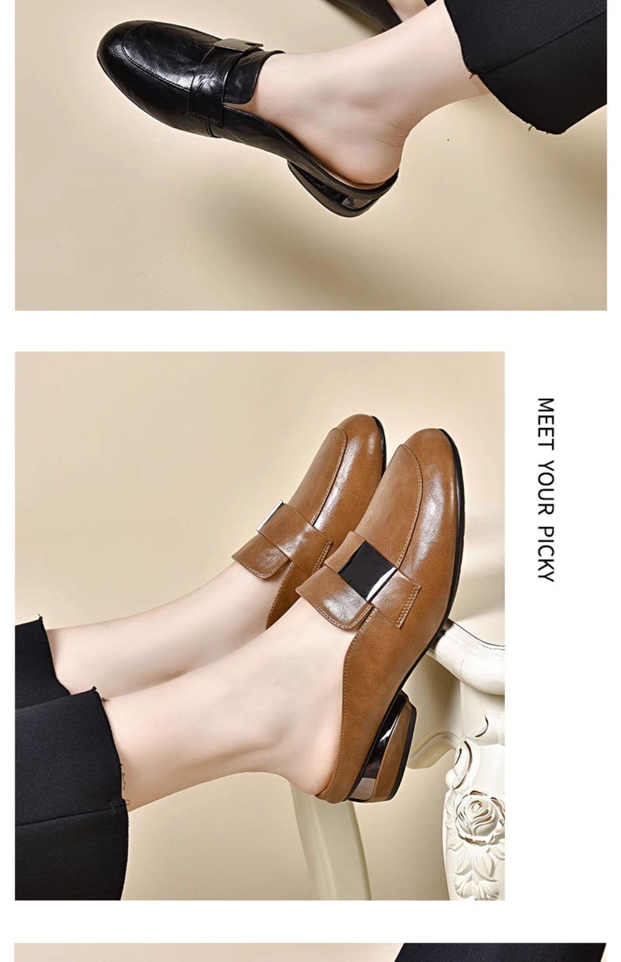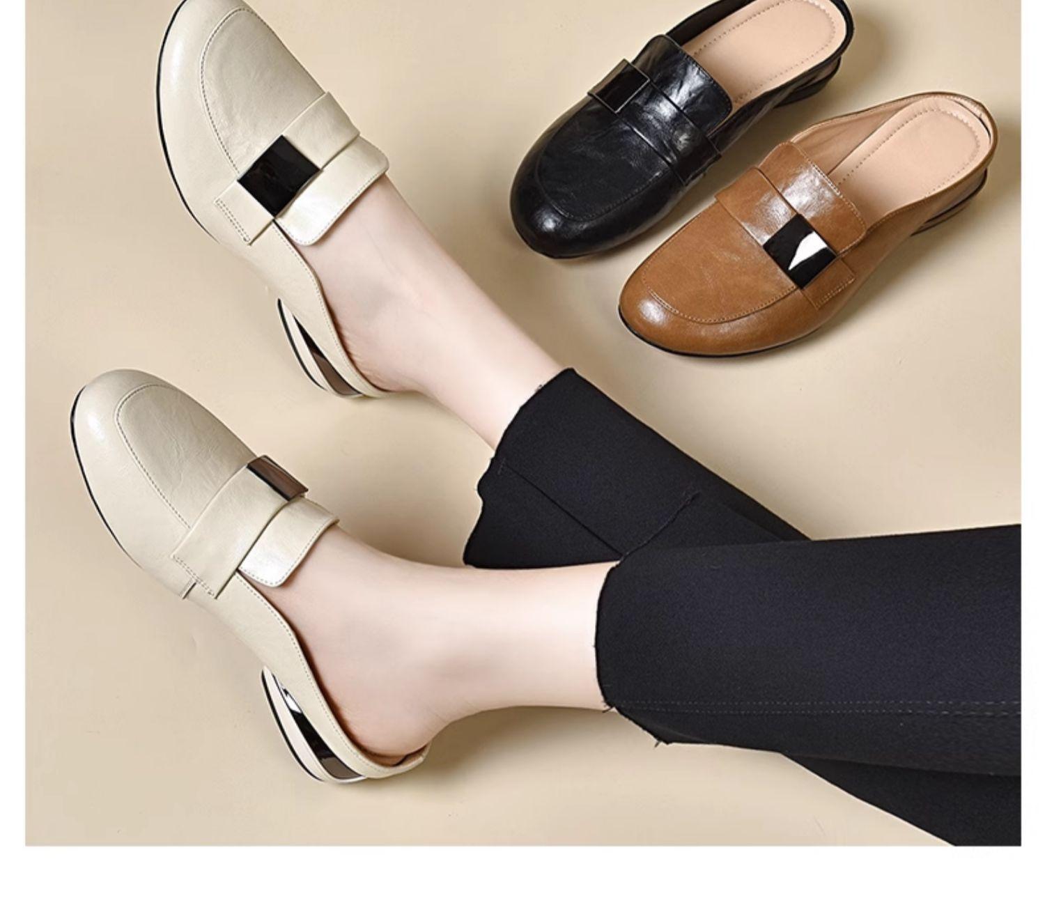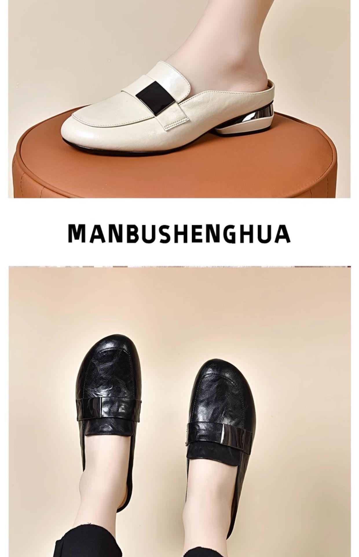 Zapatillas Baotou de Verano 2024 Mocasines Slip-On Zapatos de Cuero Pequeños de Tacón Bajo Estilo Británico Popular para Mujer Zapatos Mary Jane