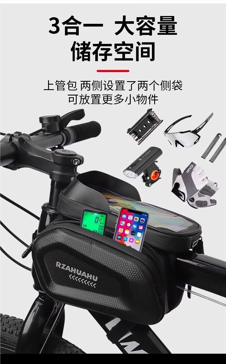 Bolsa de Viga Delantera para Bicicleta, Bolsa de Almacenamiento para Teléfono Móvil para Bicicleta de Montaña, Bolsa para Bicicleta, Bolsa Colgante Impermeable, Accesorios de Equipo para Ciclismo Carcasa Dura
