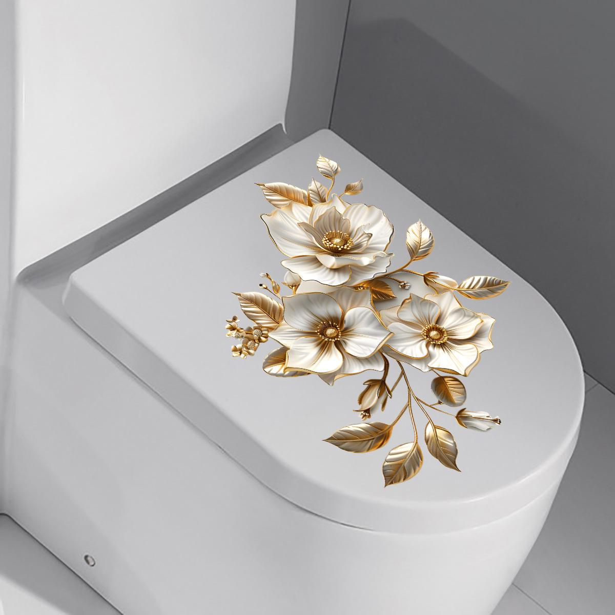 Nuevo ACC33247 Adhesivo de Flor Blanca Fresca Baño Inodoro Impermeable Adhesivo para Inodoro Autoadhesivo Adhesivo de Pared