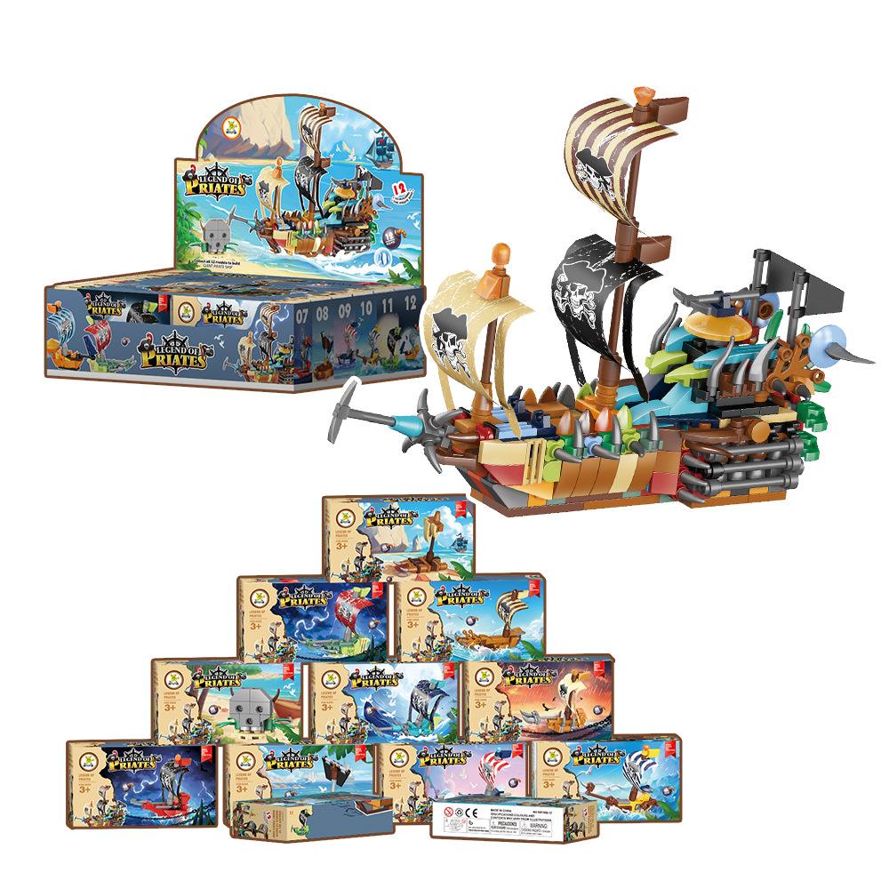 Nuevo Barco Pirata Ensamblado 12 en 1 Bloques de Construcción de Partículas Pequeñas Juguetes Educativos para Niños Compatibles Partículas Pequeñas Regalos Transfronterizos
