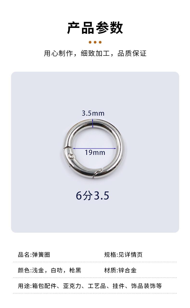 Aleación de Zinc Anillo de Resorte Hebilla de Resorte para Llaves de Coche Accesorio Hebilla Colgante Redonda Llavero Colgante para Bolso