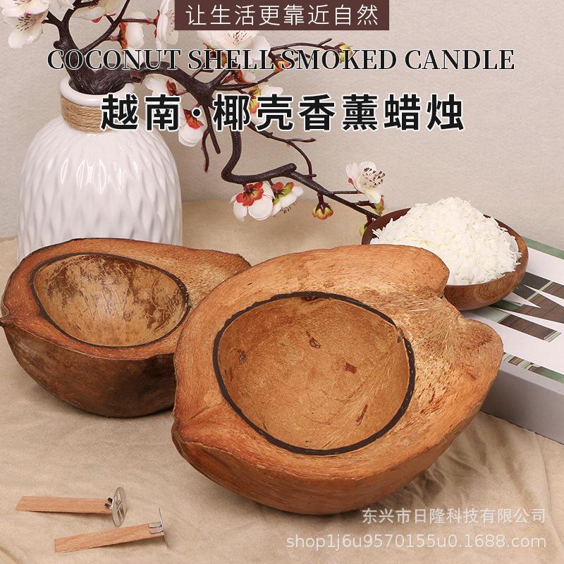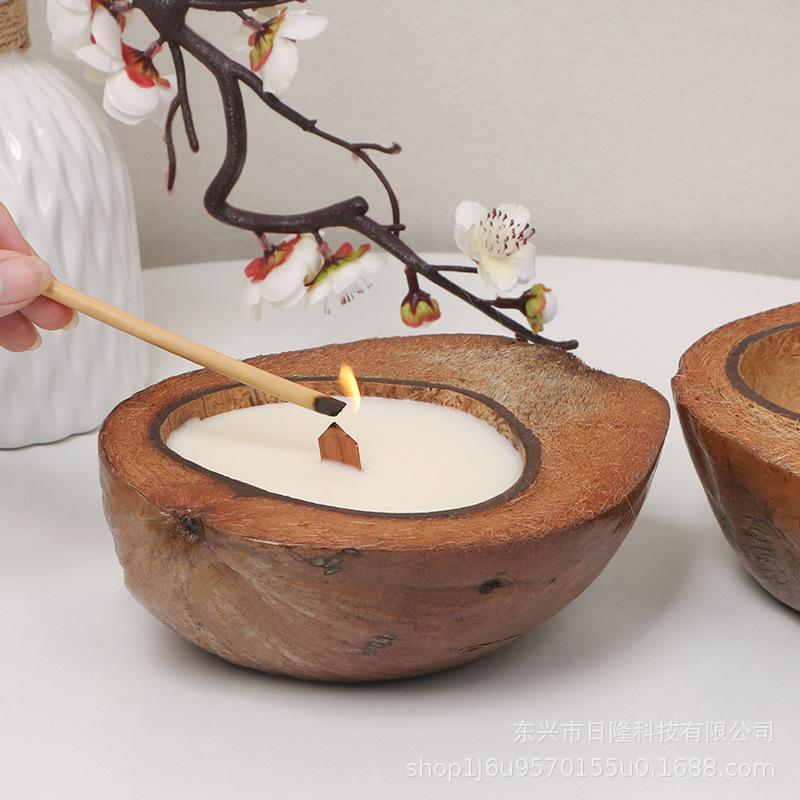 Compra Vela de aromaterapia con vela de cáscara de coco de cuero esencia cera de soja mecha de madera material hecho a mano al por mayor en Joom.pro