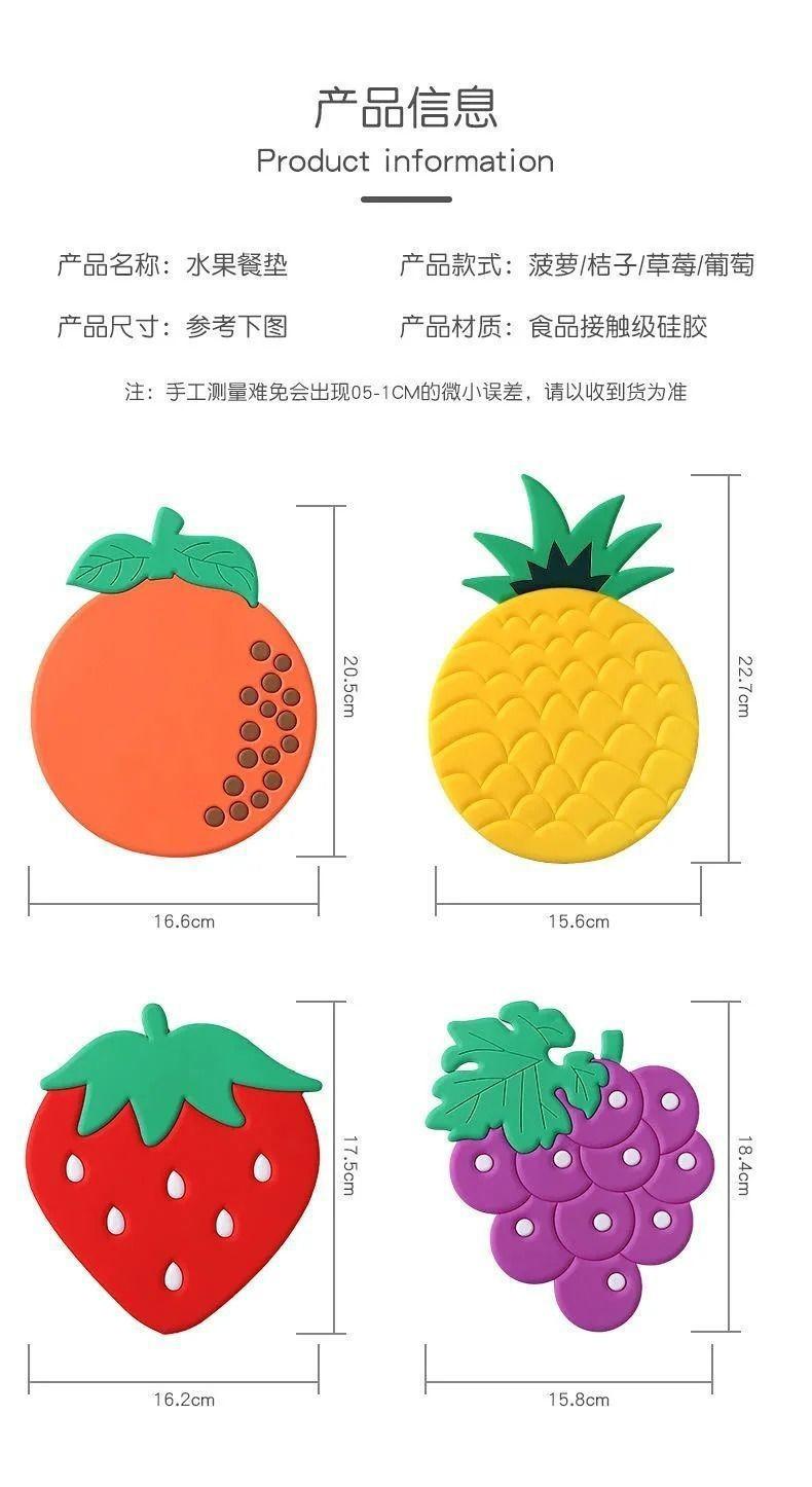"Silicone insulation pad" strawberry, "Silicone insulation pad" pineapple, "Silicone insulation pad" grapefrui...