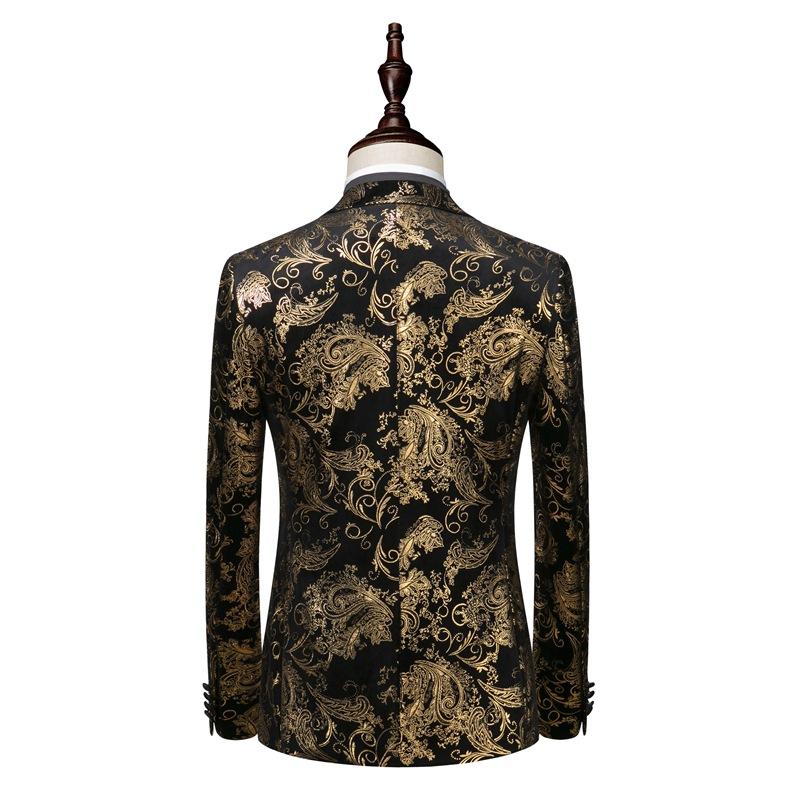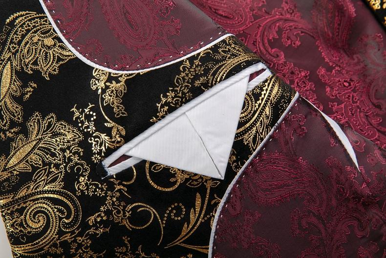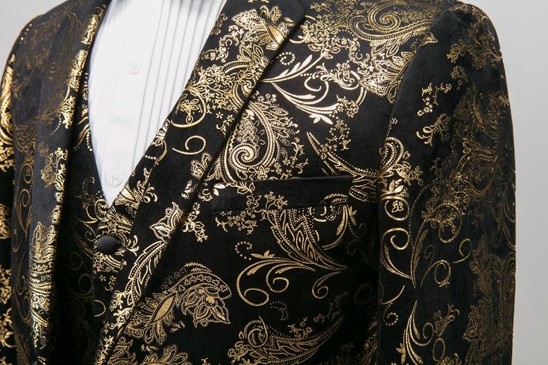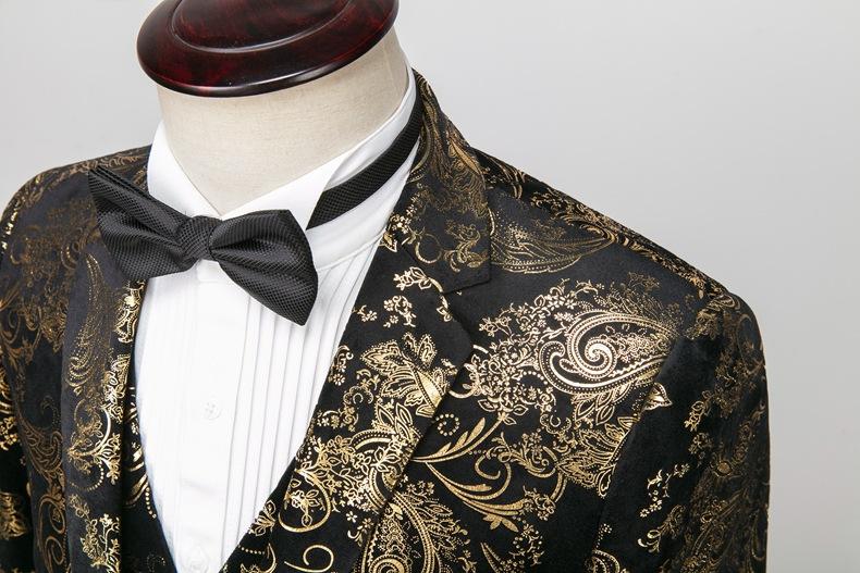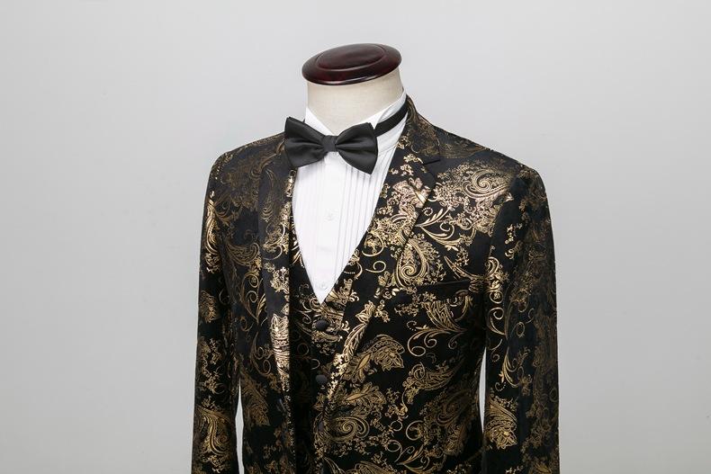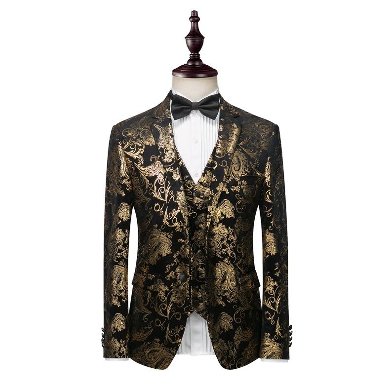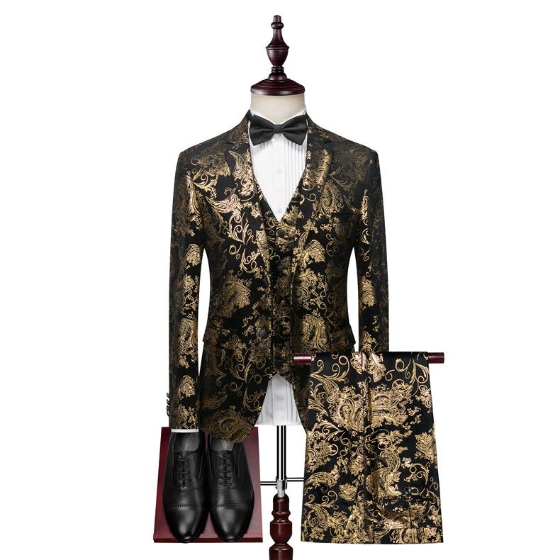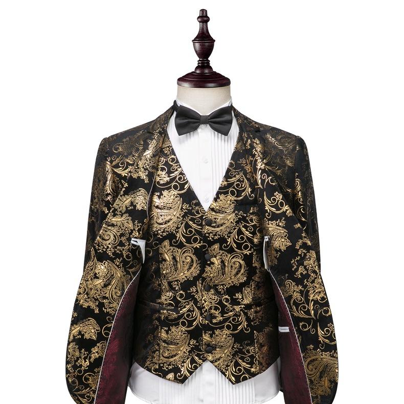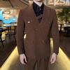 Traje de Hombre de Marca de Moda Transfronteriza Estilo Británico Moda Casual Traje Estampado Bronceado de Tres Piezas Vestido para Actuación