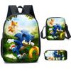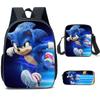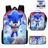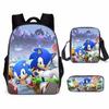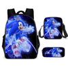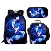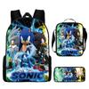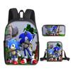 Mochila SONIC de Liberación Rápida Transfronteriza Set de Tres Piezas Mochila de Dibujos Animados Bolso de Hombro Estuche para Lápices Venta al por Mayor