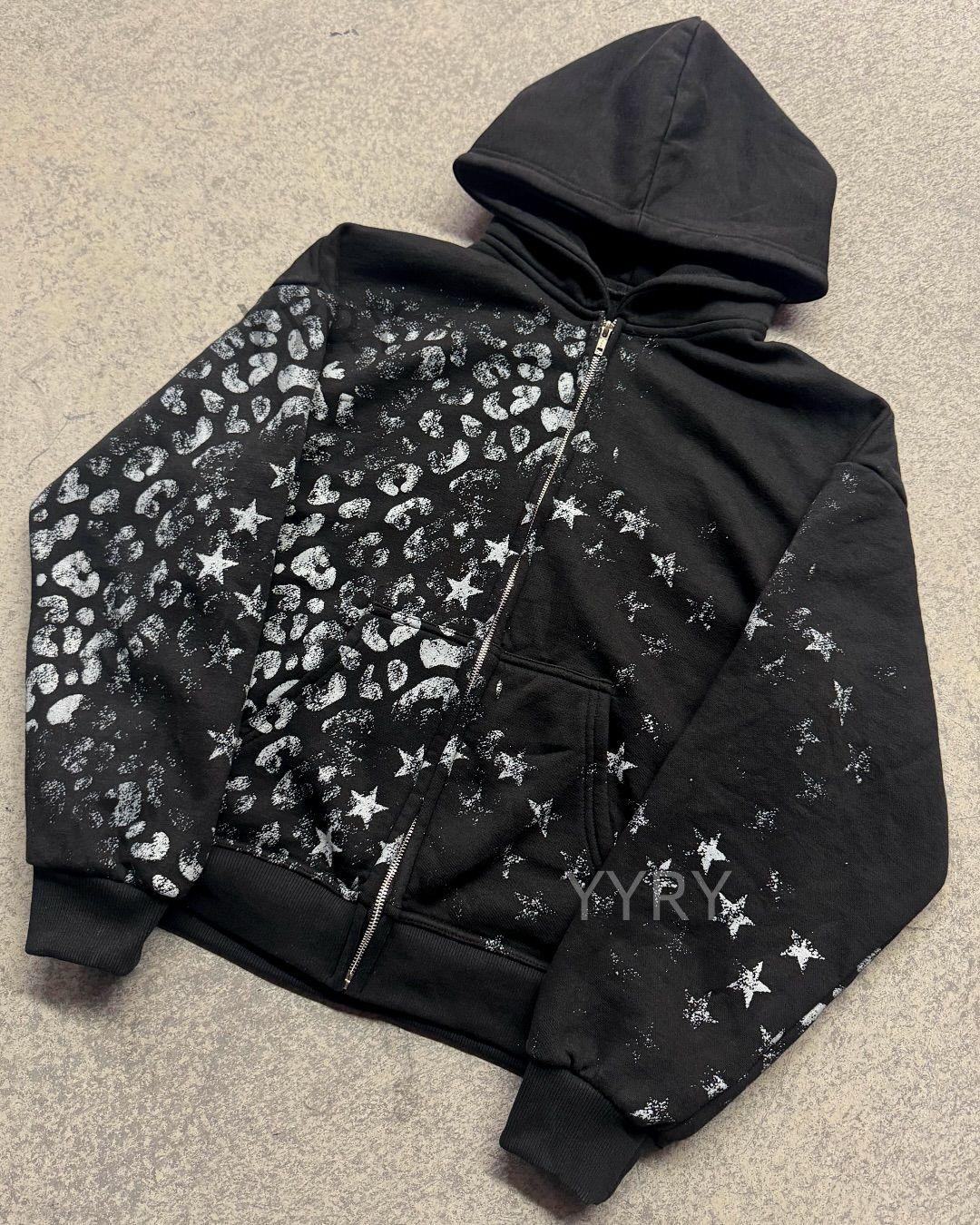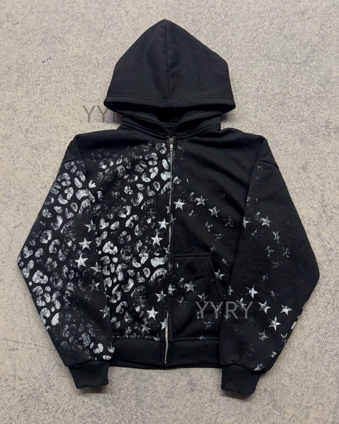 Sudadera con Capucha y Pantalón de Chándal con Cremallera y Estampado de Personalidad para Comercio Exterior Europeo y Americano, Jersey de Manga Larga, Sudadera con Capucha, Chaqueta Vintage, Ropa de Calle