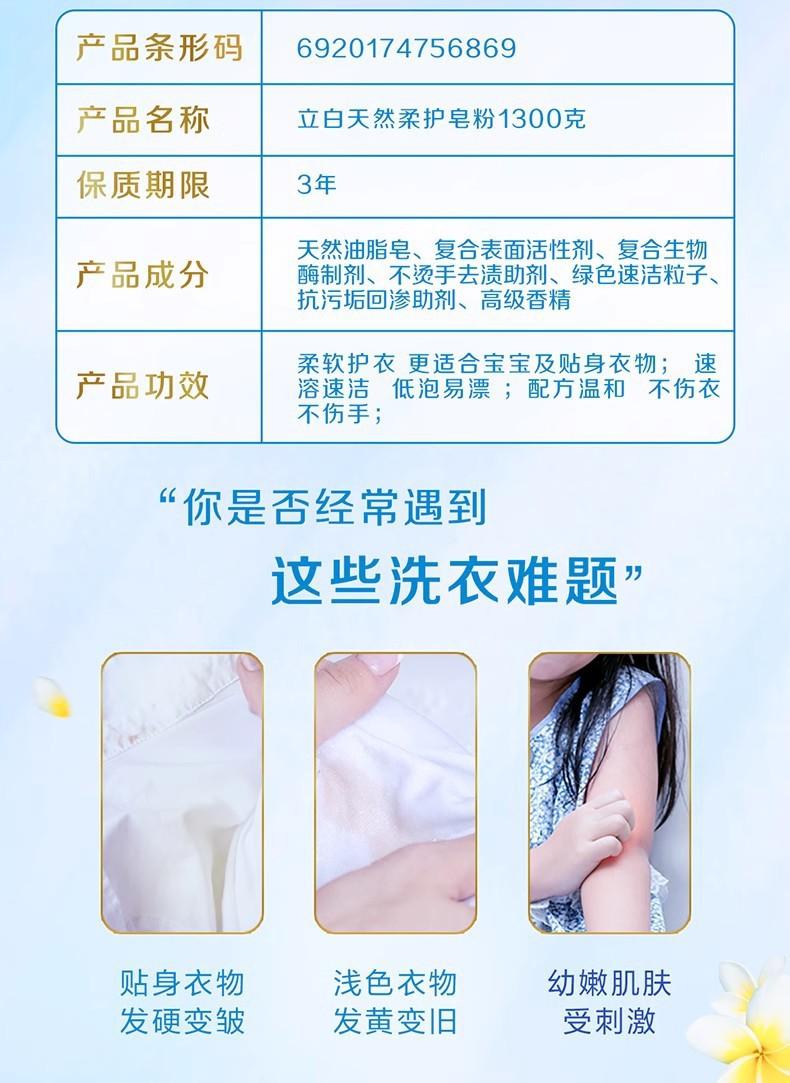 Liby Natural Soft Care Jabón en Polvo 1.3kg Cuidado Suave de la Ropa Quitamanchas Polvo para Lavar Hogar Genuino Venta al por Mayor