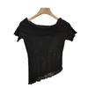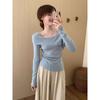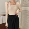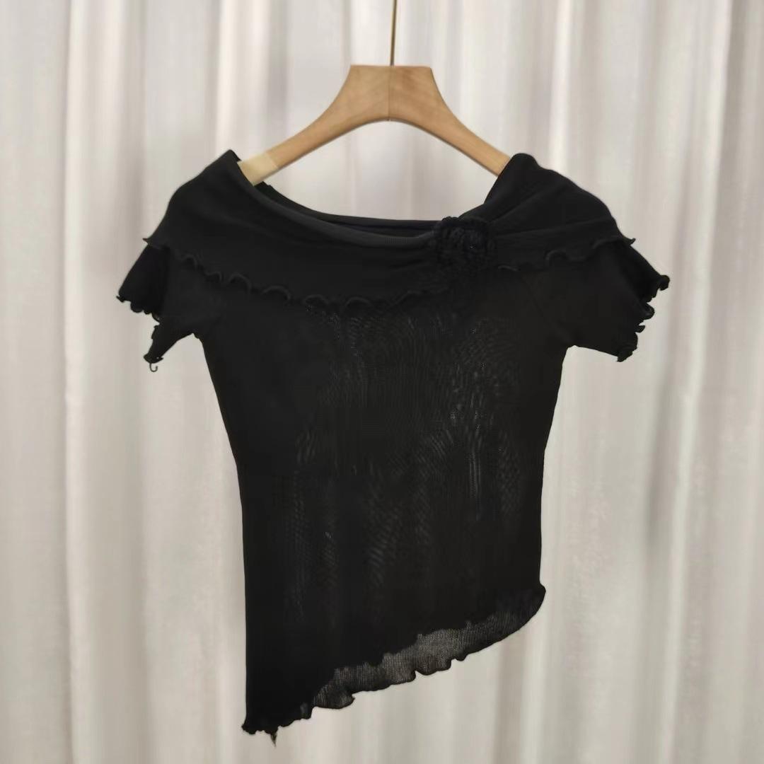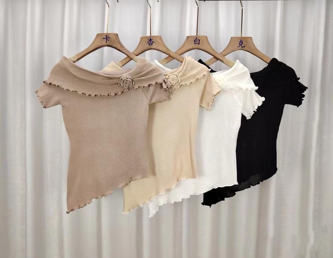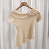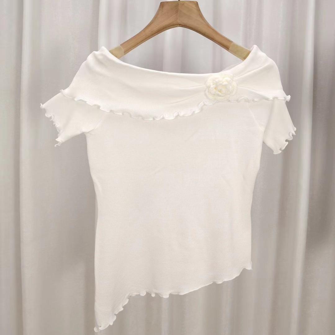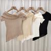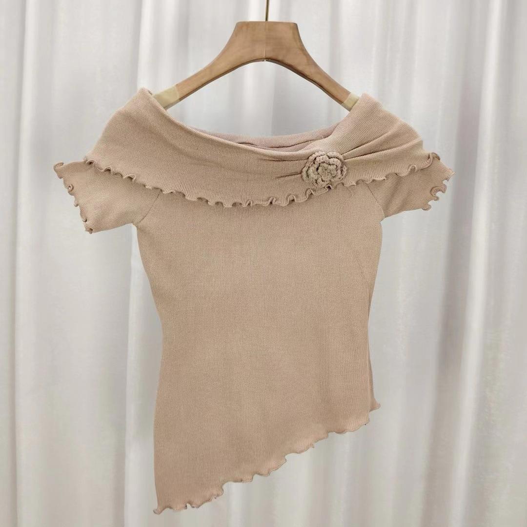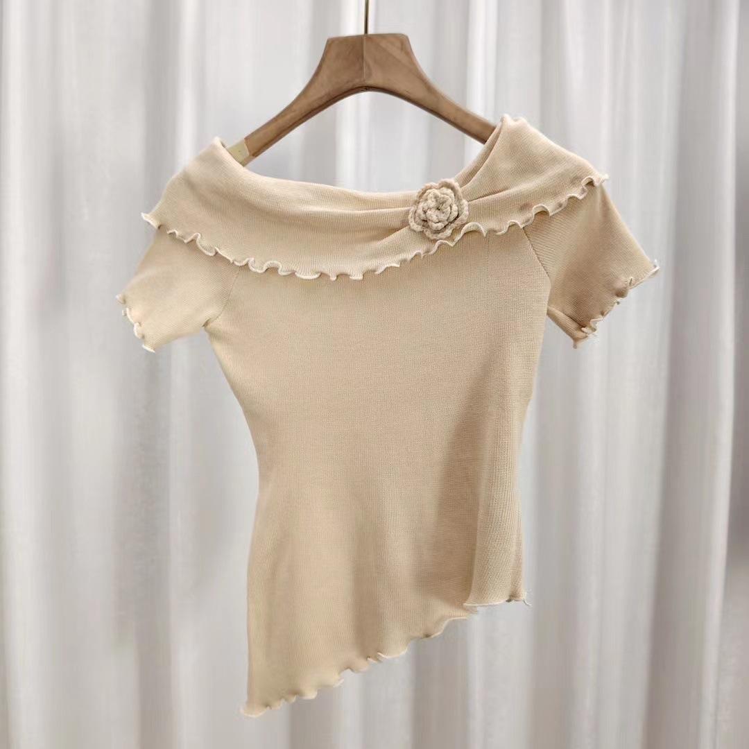 Primavera 2024 Nuevo Estilo Coreano Sentido del Diseño Flor Hombro Descubierto Suéter de Punto Francés Elegante Oreja de Madera Suéter Ajustado