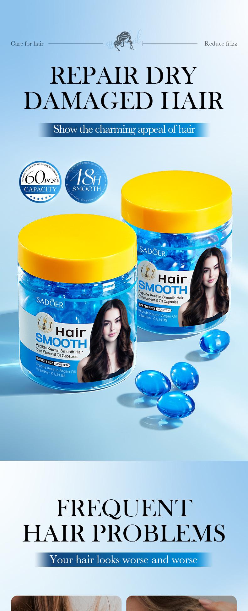 Cápsulas de Aceite Esencial para el Cuidado del Cabello Liso con Queratina Polipeptídica Sadoer (Versión extranjera) 1Mlx60Pcs