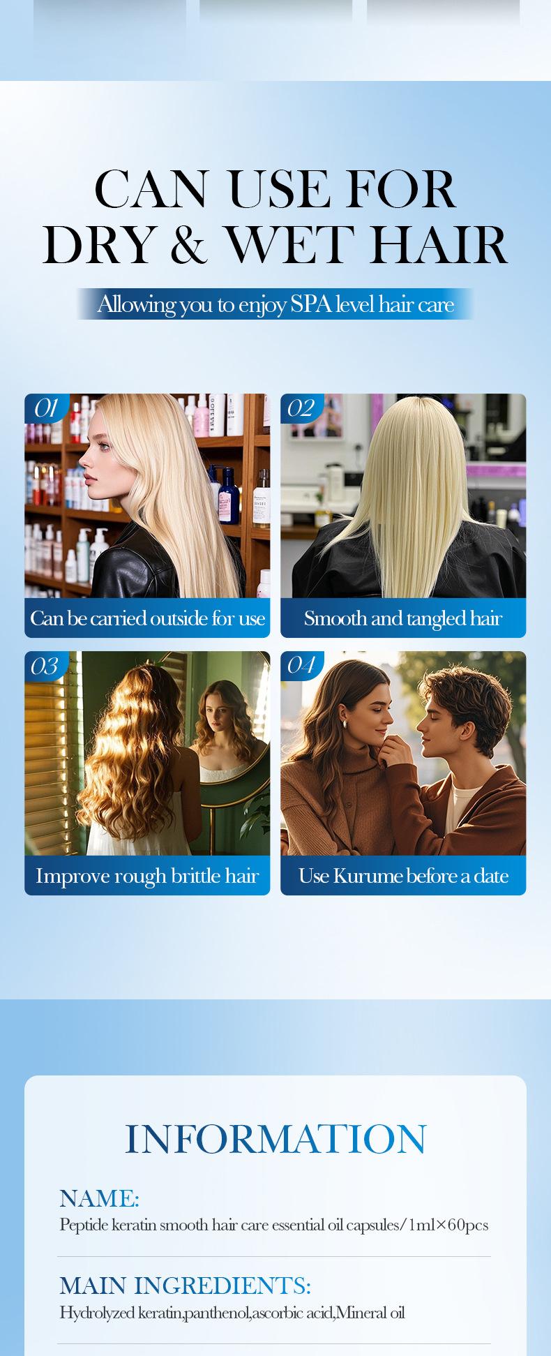 Polypeptide keratin hair care essential oil capsules 1mlx60pcs [only for foreign trade export, domestic sales ...