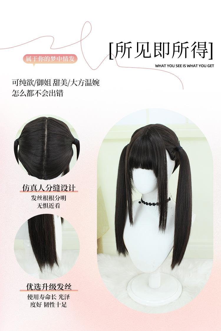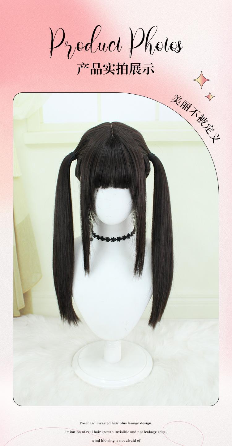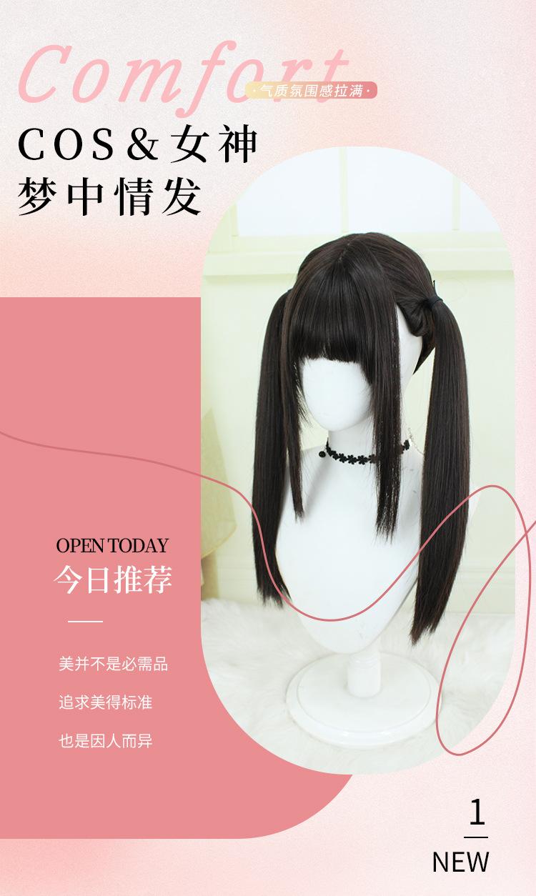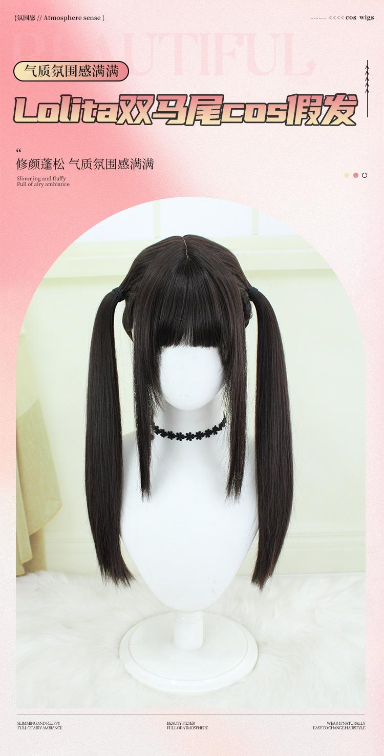 Peluca Lolita Nueva con Coletas Dobles, Peluca Femenina Moldeadora de Rostro Bidimensional Lolita de Cabello Largo Lacio, Venta al por Mayor de Pelucas con Cuero Cabelludo Grande