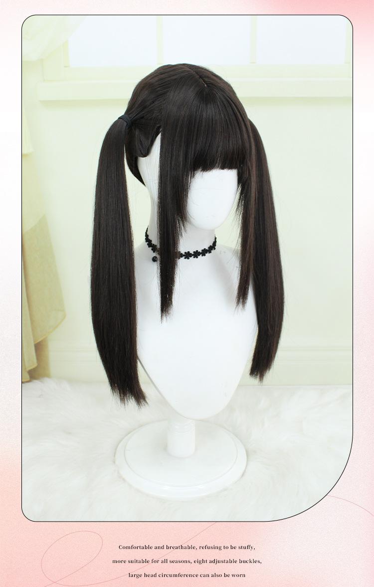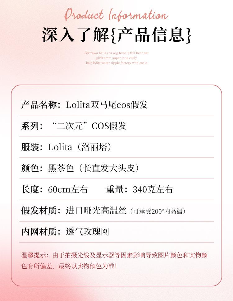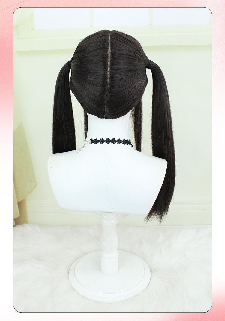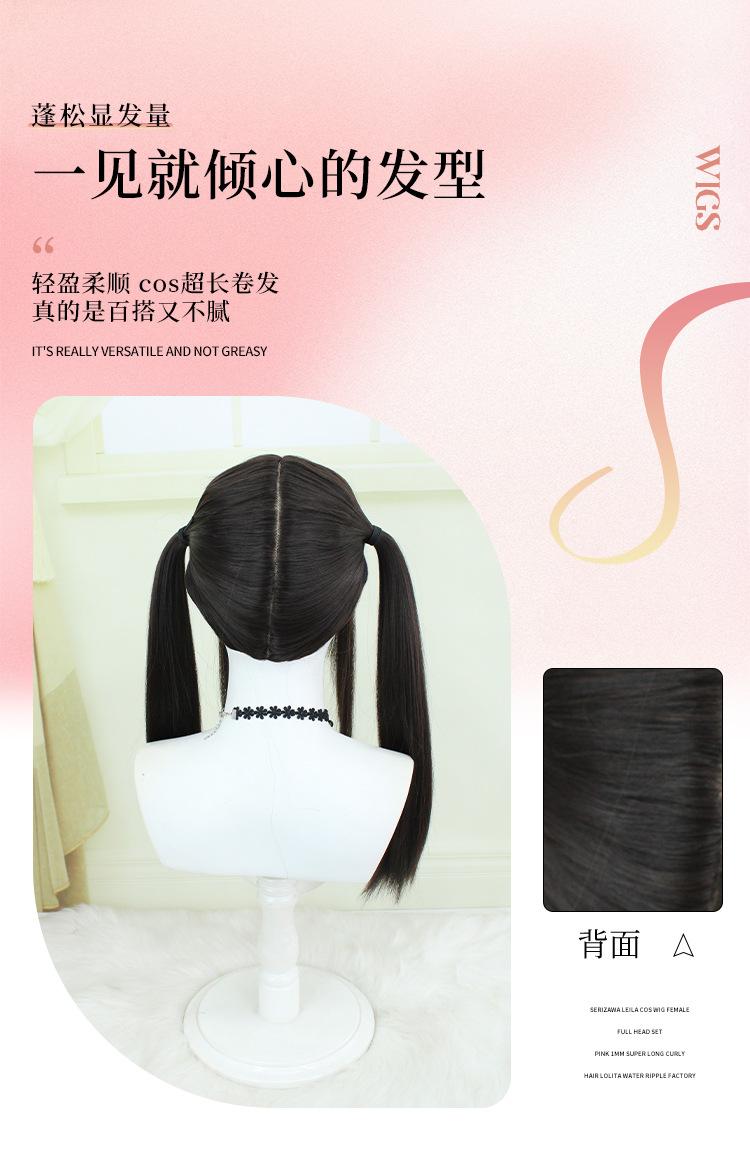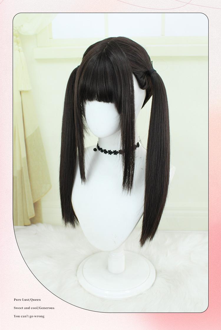 Peluca Lolita Nueva con Coletas Dobles, Peluca Femenina Moldeadora de Rostro Bidimensional Lolita de Cabello Largo Lacio, Venta al por Mayor de Pelucas con Cuero Cabelludo Grande