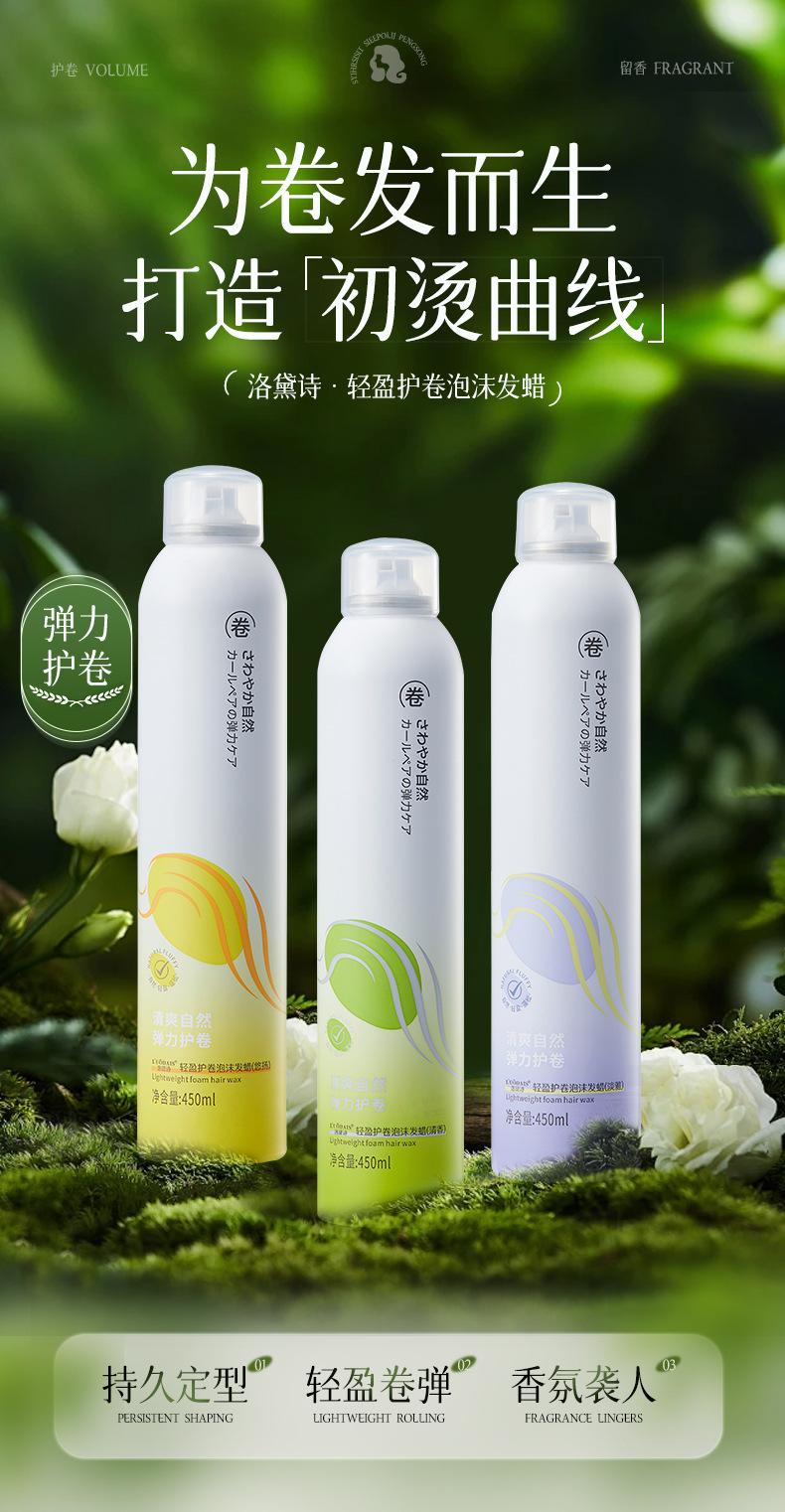 Luodai Shi Espuma Ligera para Rizos Cera para el Cabello 450ml Hidratante Esponjoso Rizo Francés Cuidado Elástico para Rizos Producto Genuino