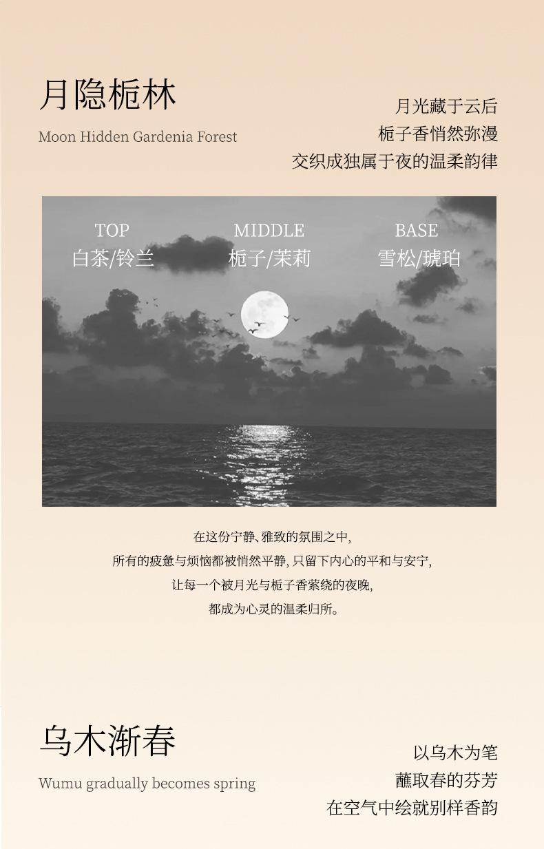 【Aroma del Producto】:Gardenia a la Luz de la Luna, Despertar de Ébano Primavera, Extracto de Té Reflejando la Primavera