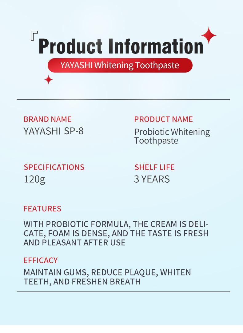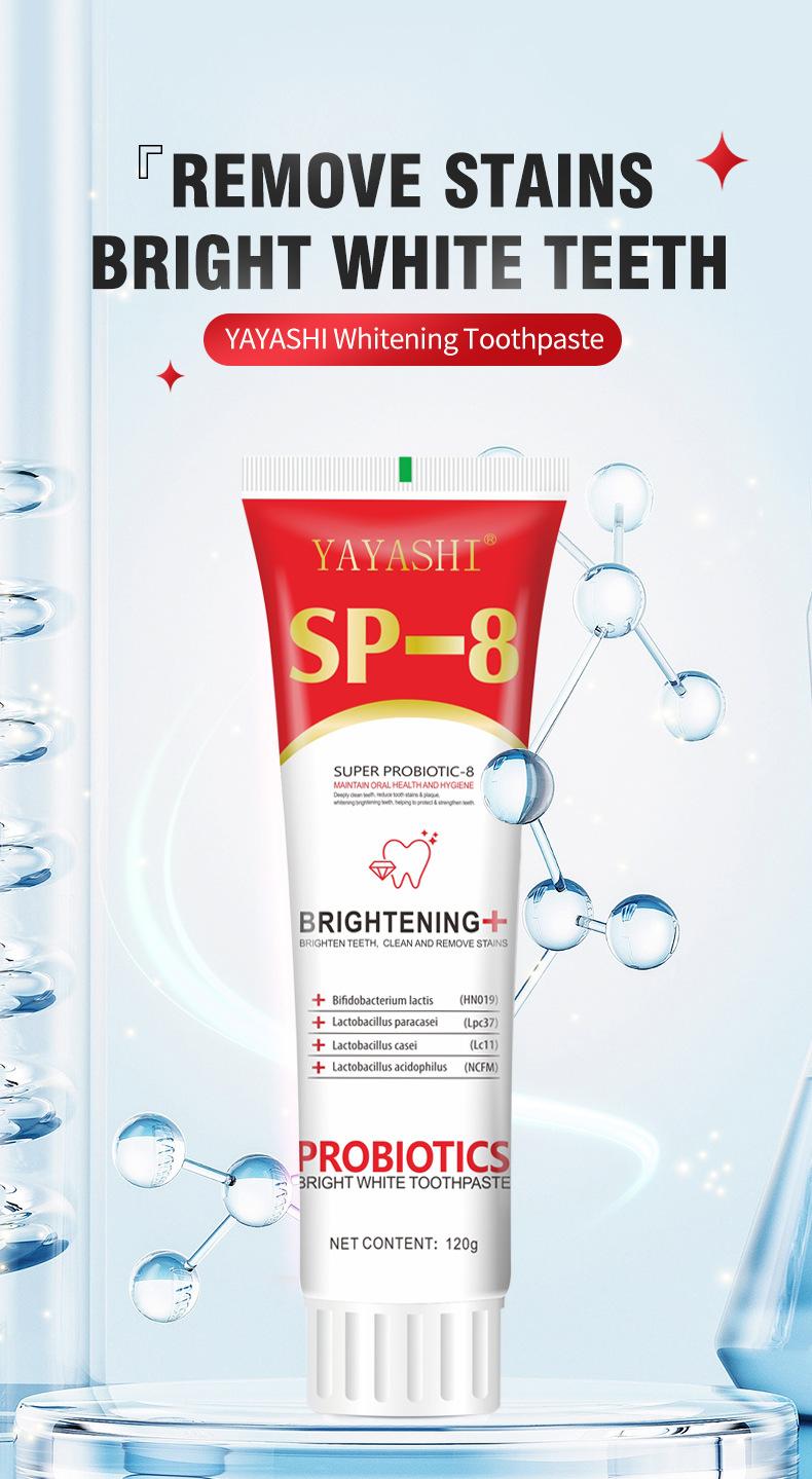 Pasta de Dientes Exclusiva Transfronteriza Sp-8 Pasta de Dientes Blanqueadora Probiótica Elimina Manchas, Mejora Dientes Amarillos y Refresca el Aliento 120g