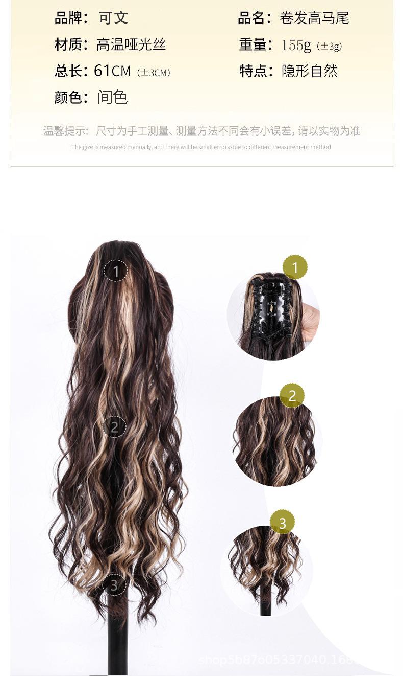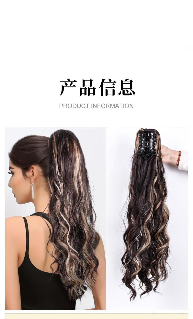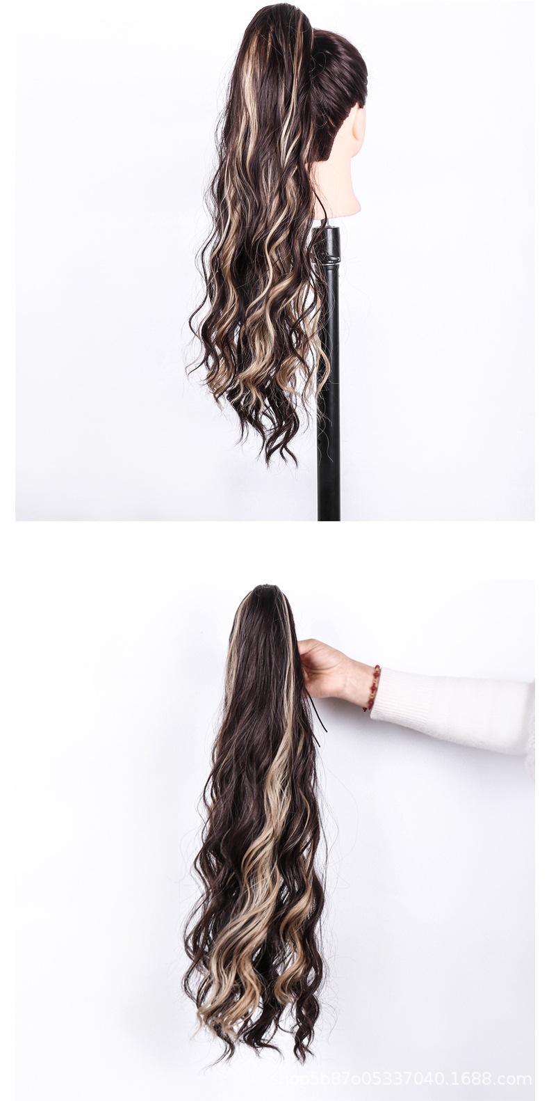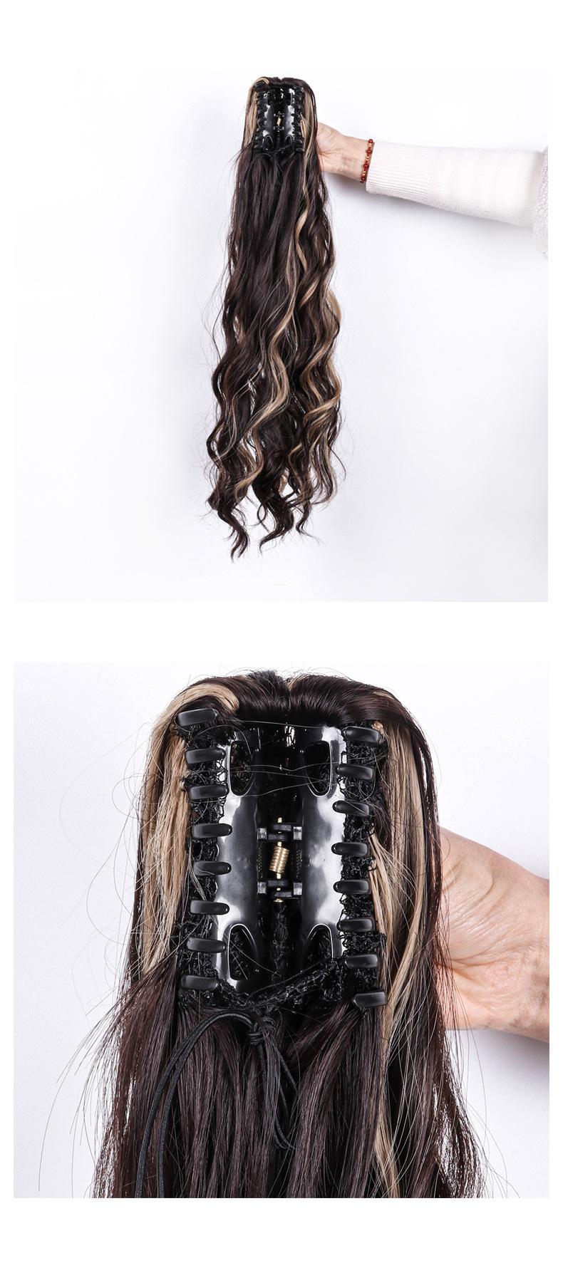 Peluca europea y americana para mujer, cabello largo de fibra química, coleta, cabello rizado natural y esponjoso, coleta con clip