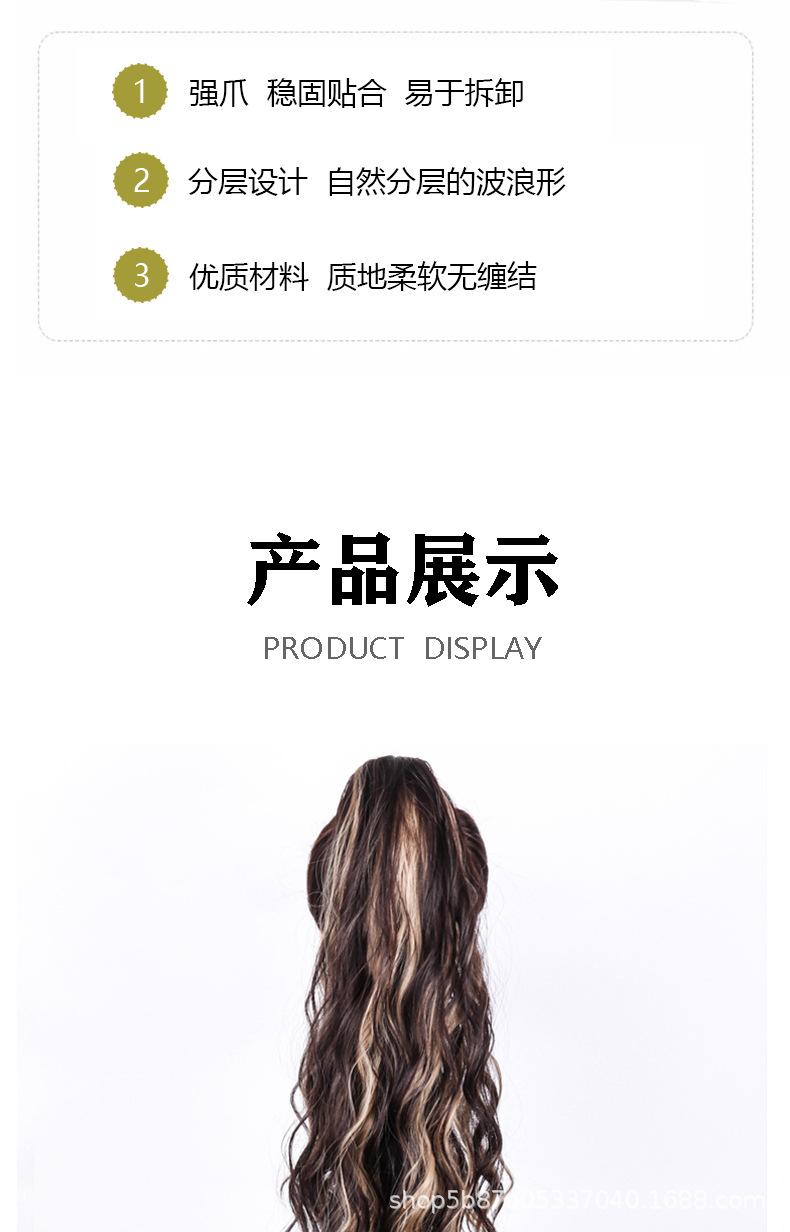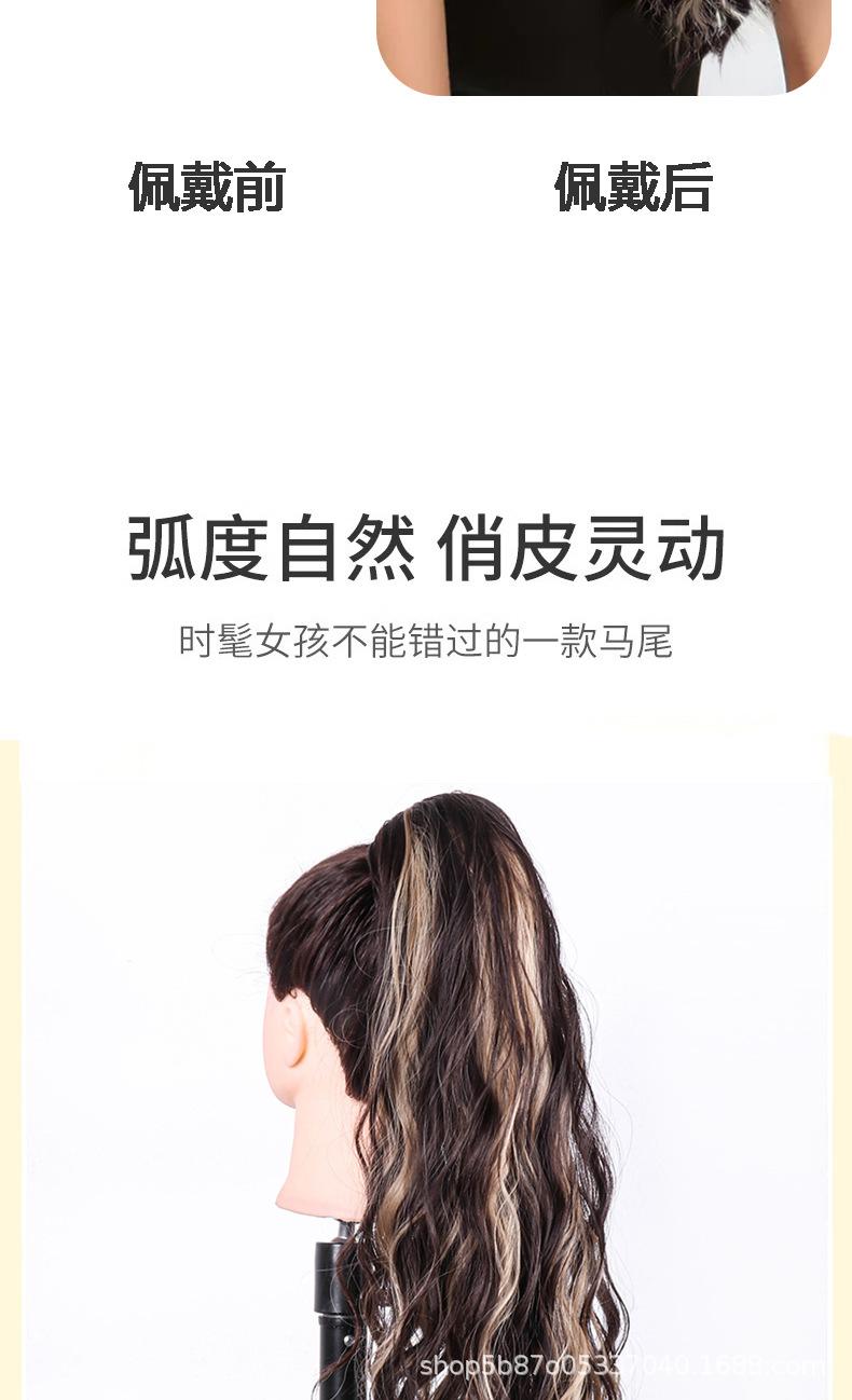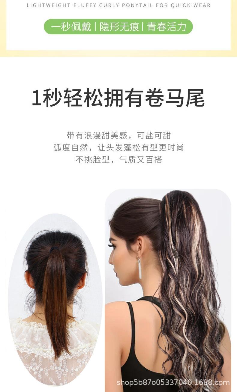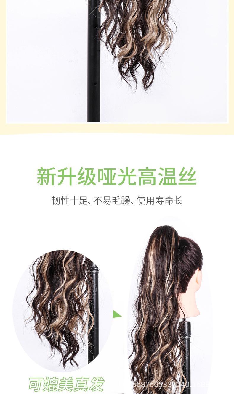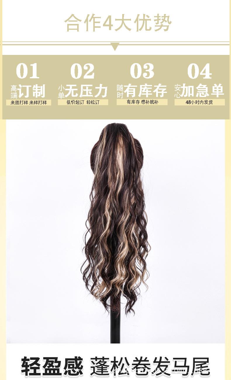 Peluca europea y americana para mujer, cabello largo de fibra química, coleta, cabello rizado natural y esponjoso, coleta con clip