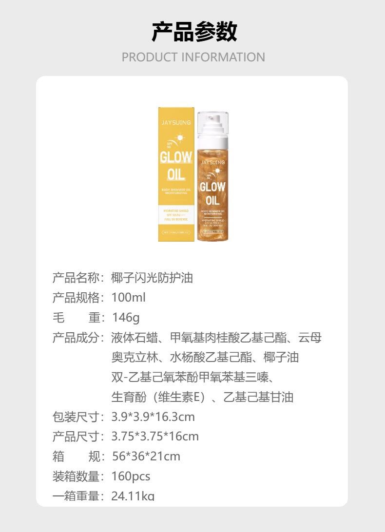 Jaysuing Aceite Protector con Brillo de Coco Verano Protección para Exteriores Refrescante No Grasoso Ligero Hidratante Brillante