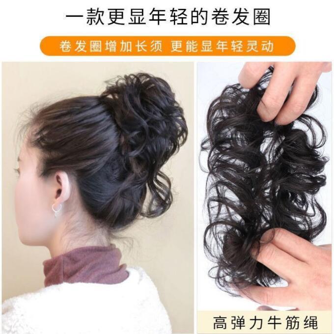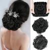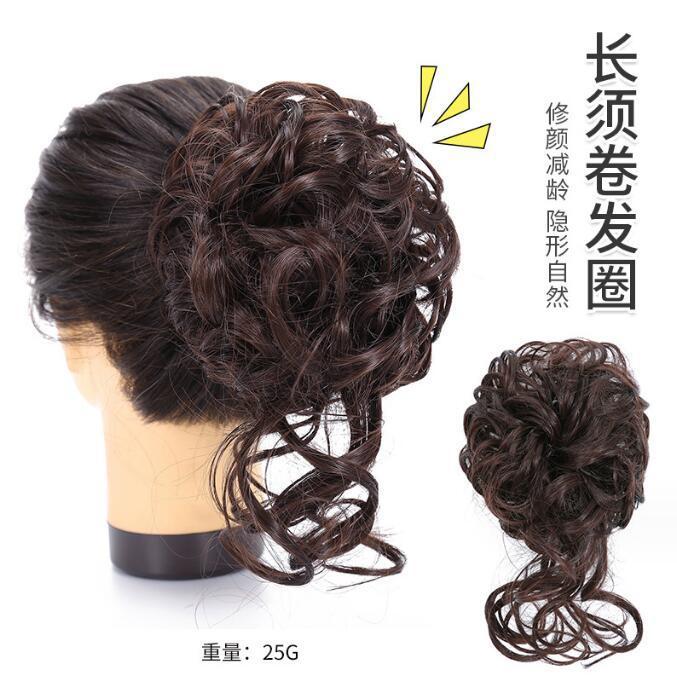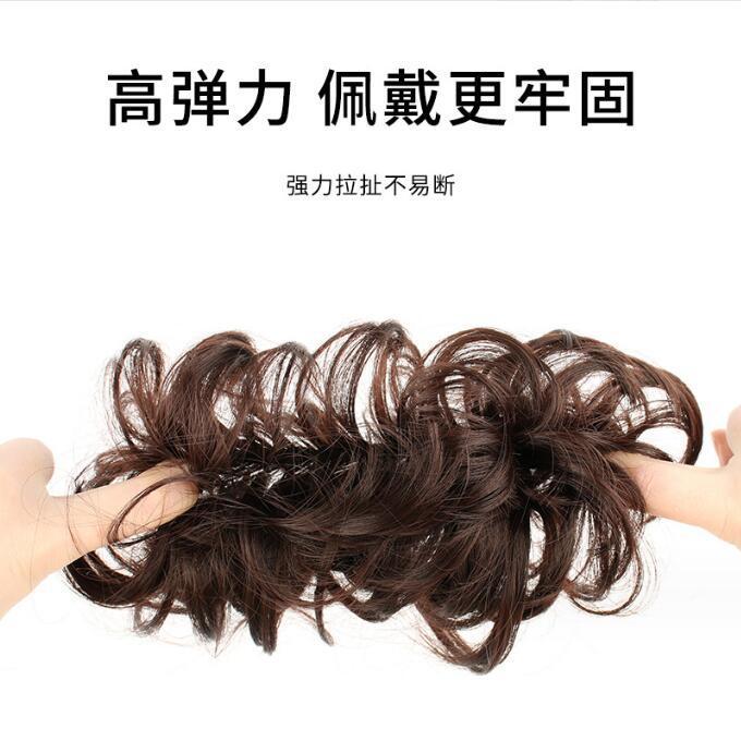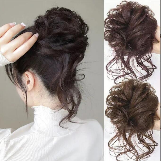 Lazo para el Cabello Moda Clip Perezoso Moño de Cabello Flor Desordenado Clip de Moño Cabeza de Bola Peluca de Seda de Alta Temperatura con Flequillo Largo y Esponjoso