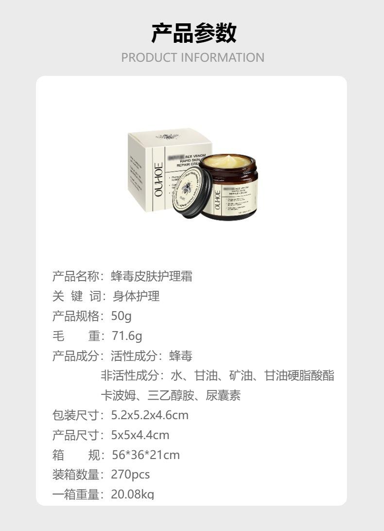 Crema para el Cuidado de la Piel con Veneno de Abeja Ouhoe Suave, Hidratante y para una Piel Suave Profundamente Hidratante e Hidratante Crema de Aplicación Externa