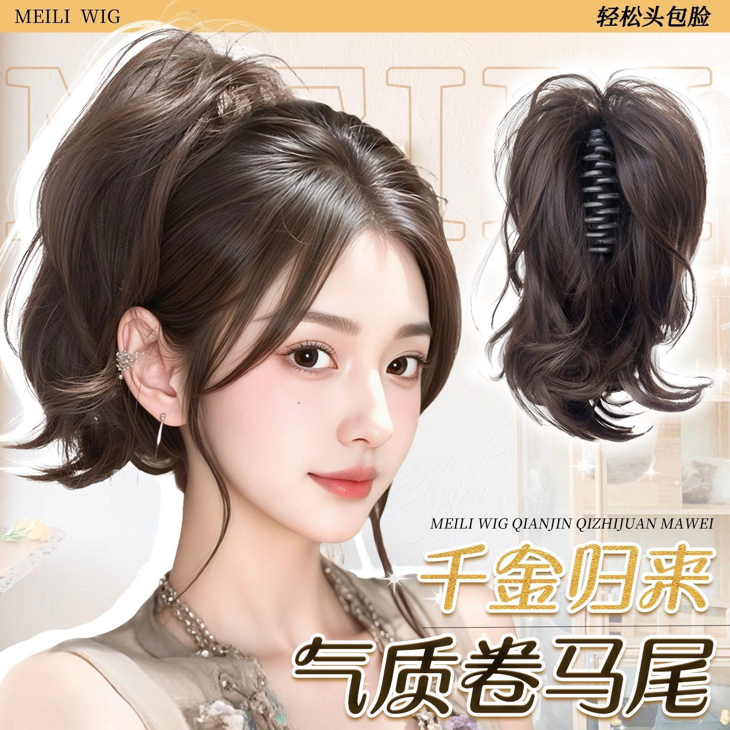 Peluca de Cola de Caballo con Clip con Rizos de Sirena Realistas, Cola de Caballo Alta, Cascada de Fuente, Corona Alta, Trenza de Cola de Caballo Dulce y Cool a la Moda