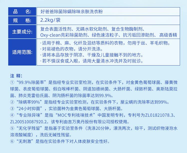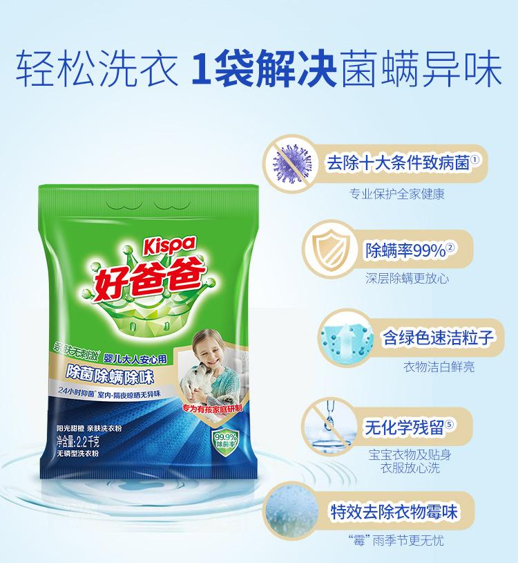 Compra Buen Papá Antibacterial, Antiácaros, Desodorizante Detergente en Polvo 2.2 kg Bolsa Grande Hogar Delicado con la Piel No Irritante Producto Genuino Lote Caja Completa al por mayor en Joom.pro