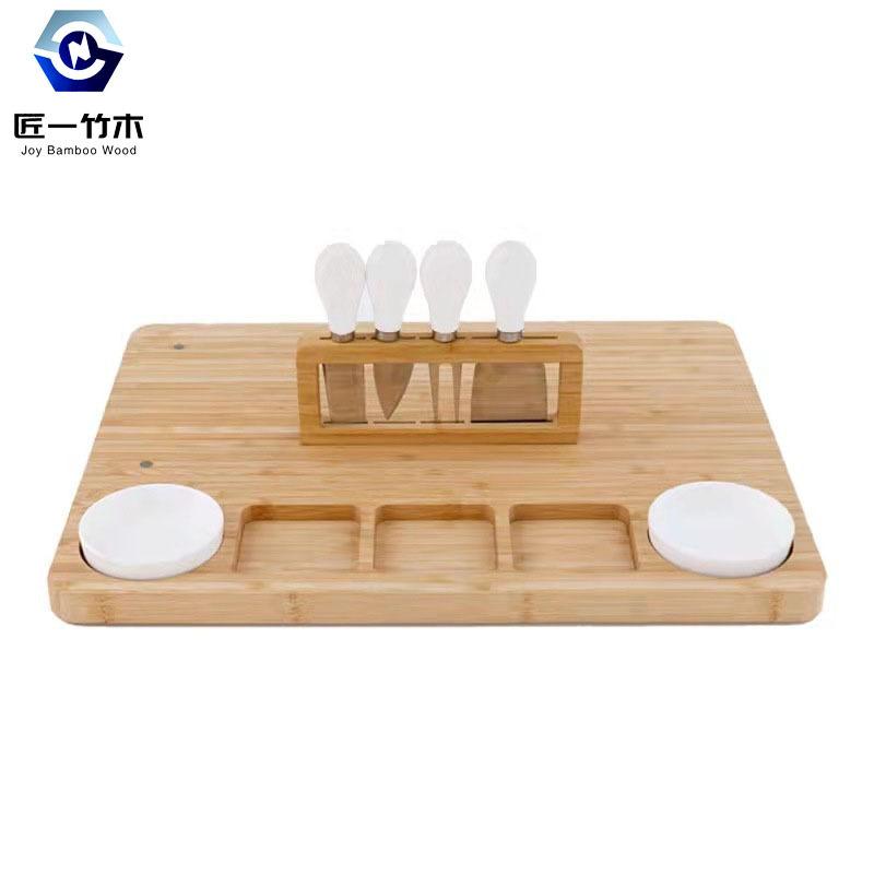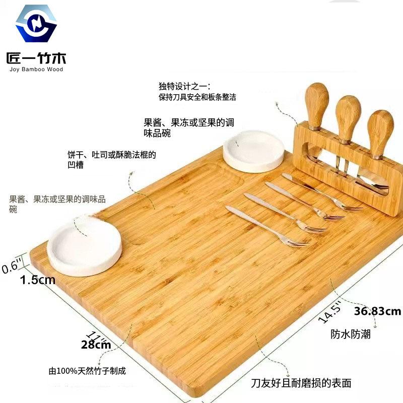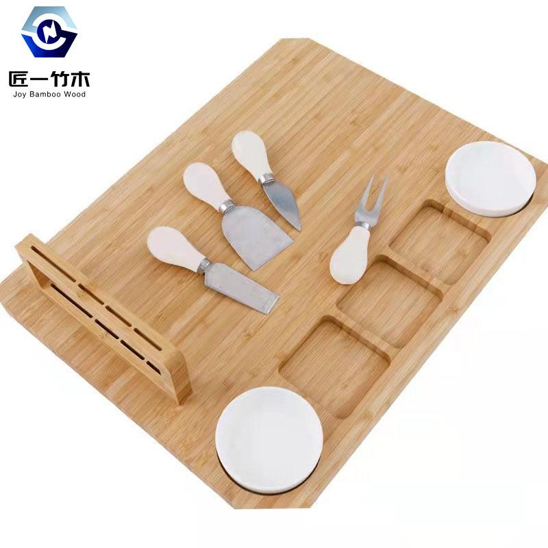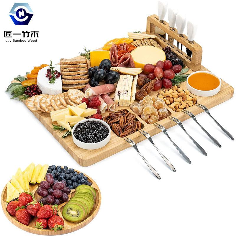 Productos de Bambú de Grado Alimenticio para el Hogar Tabla de Quesos de Bambú Plato para Quesos de Bambú Set de Plato para Quesos de Bambú de Madera con Cuchillos