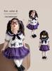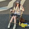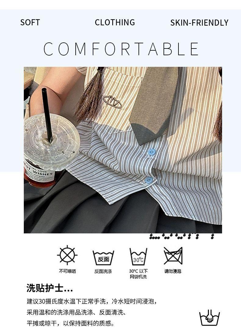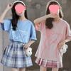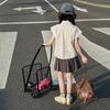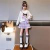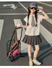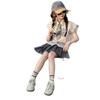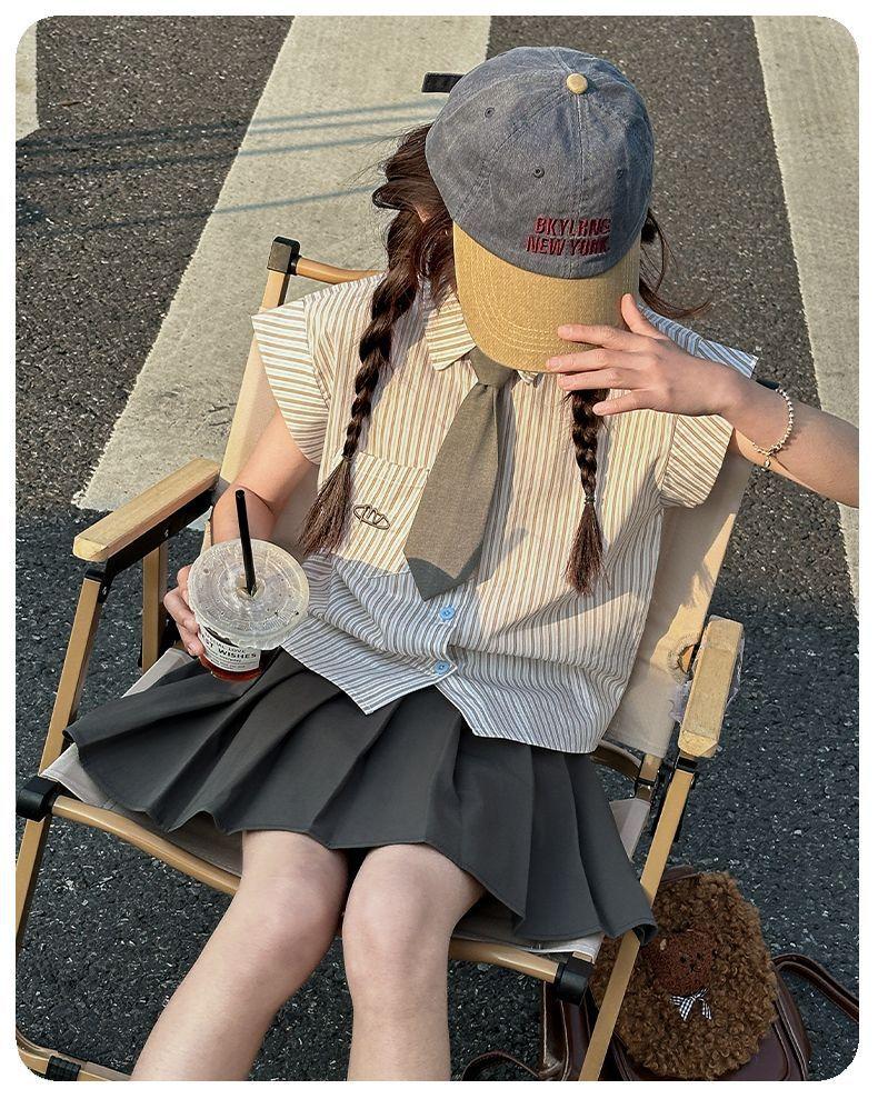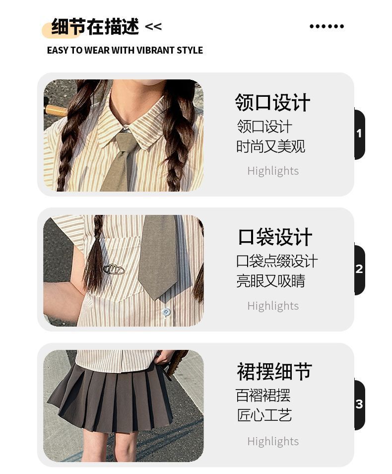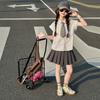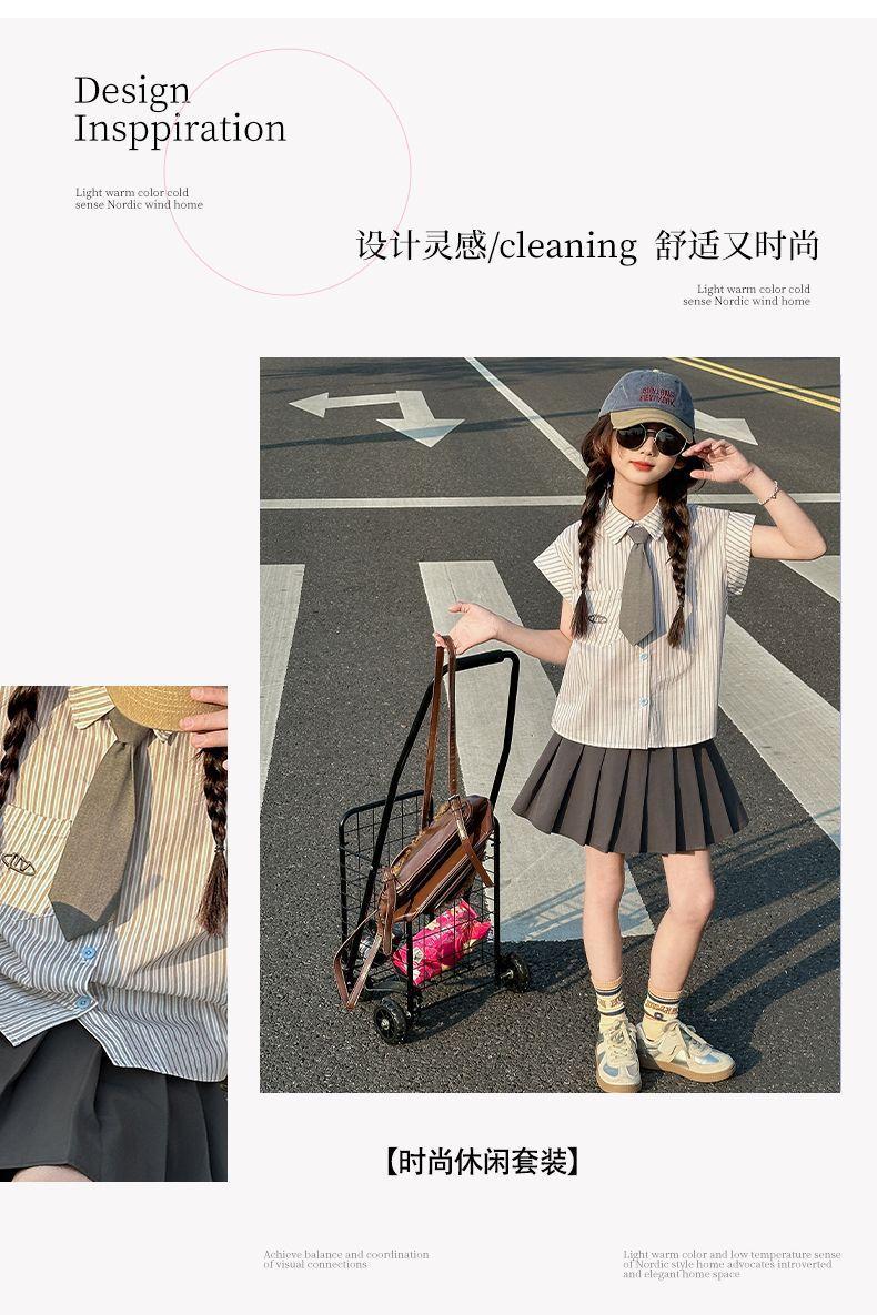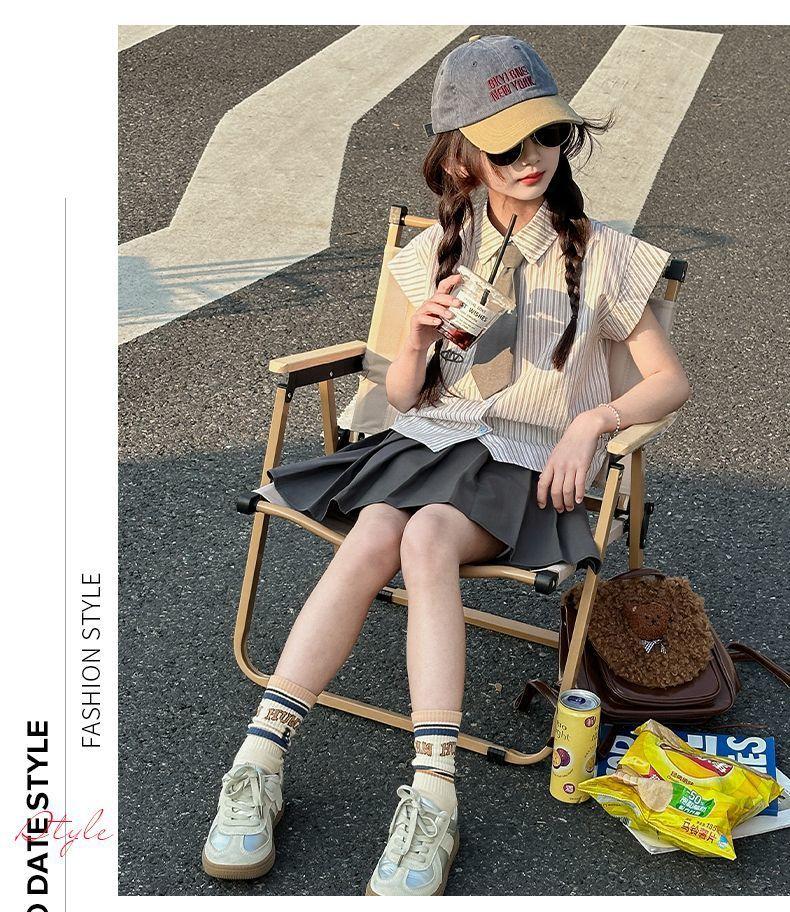 Conjunto de dos piezas de traje JK para niñas medianas y grandes 2025 Verano Nuevo estilo Camisa de manga corta a rayas para niñas Falda plisada para niños